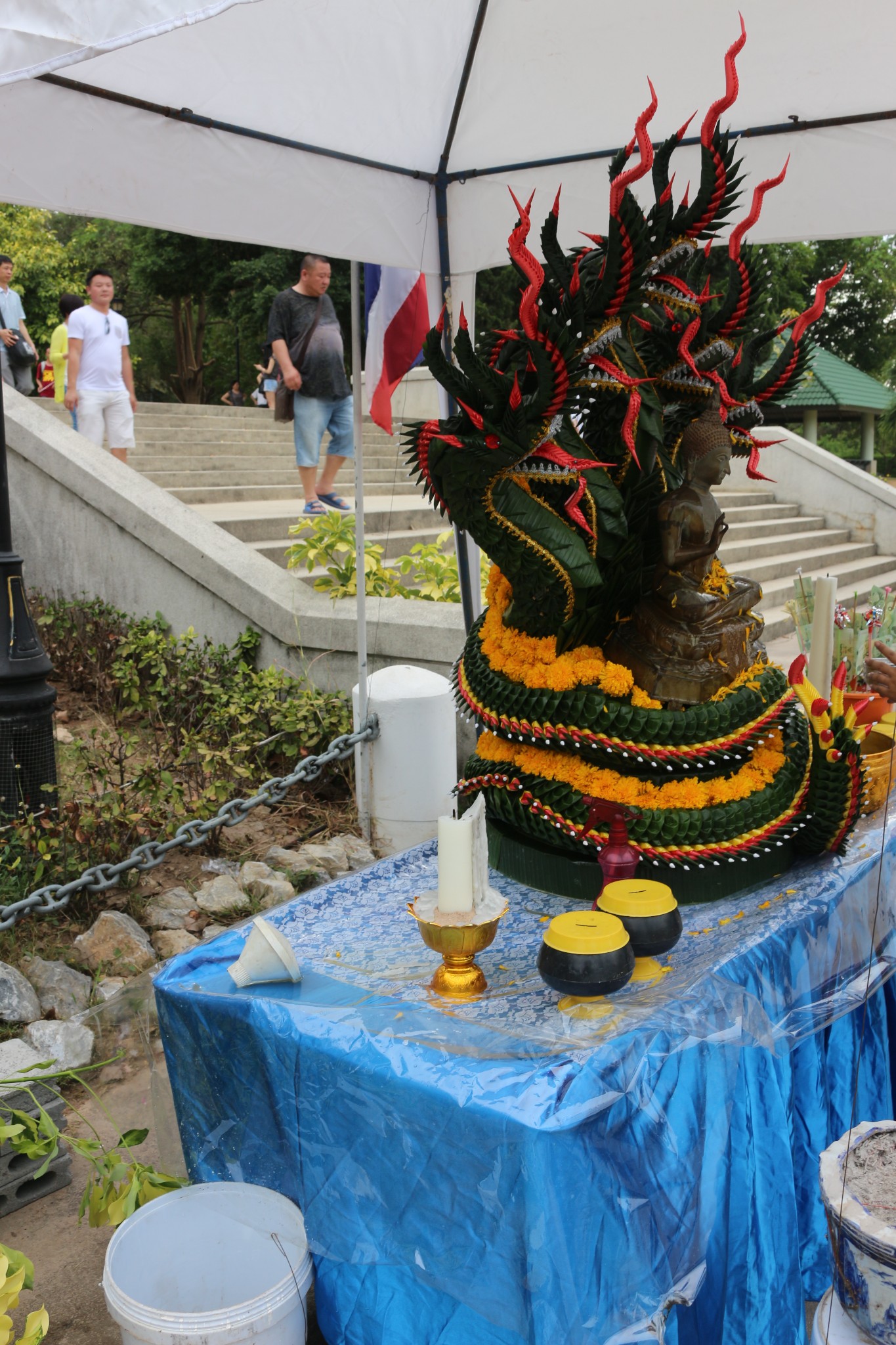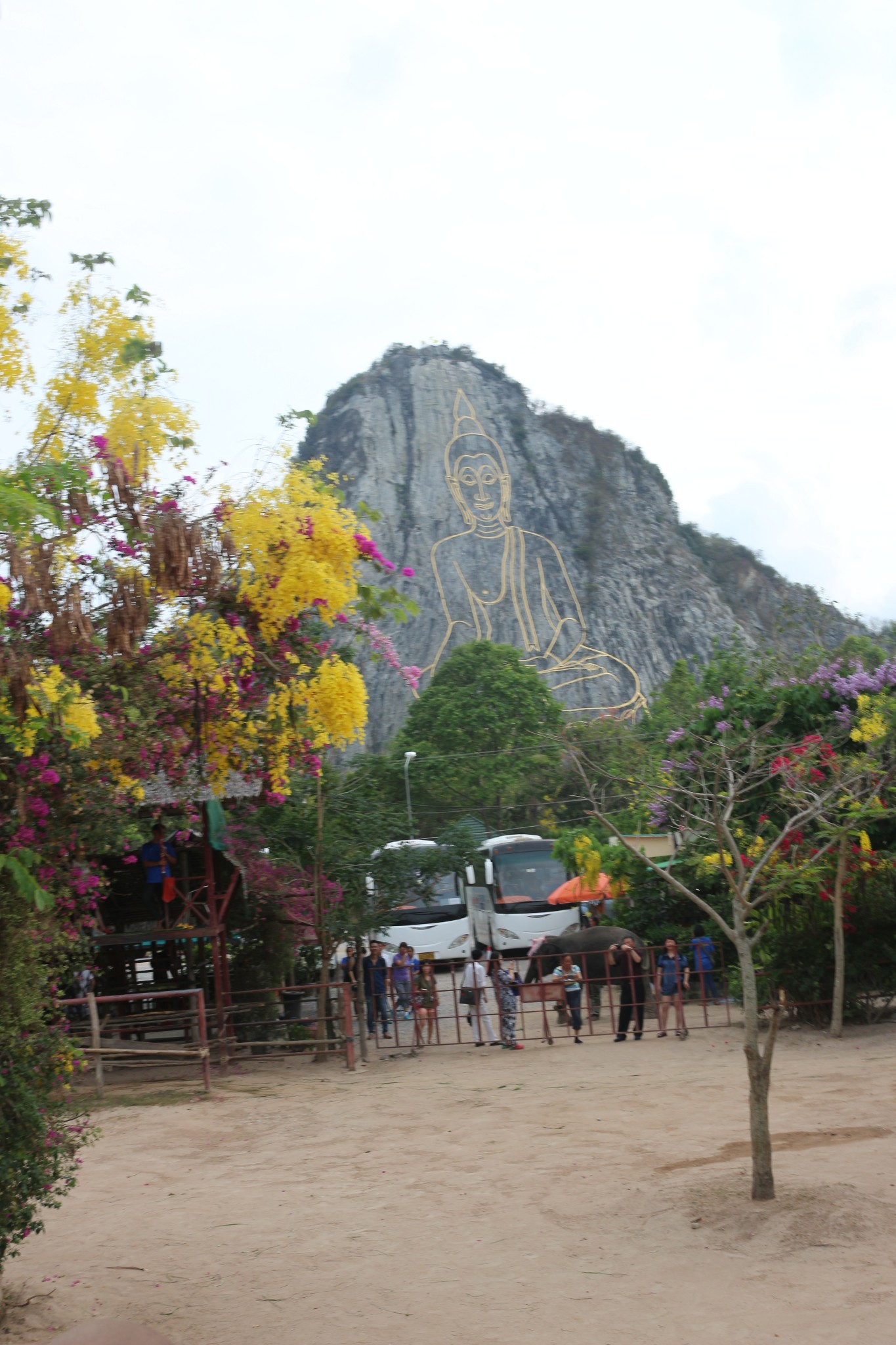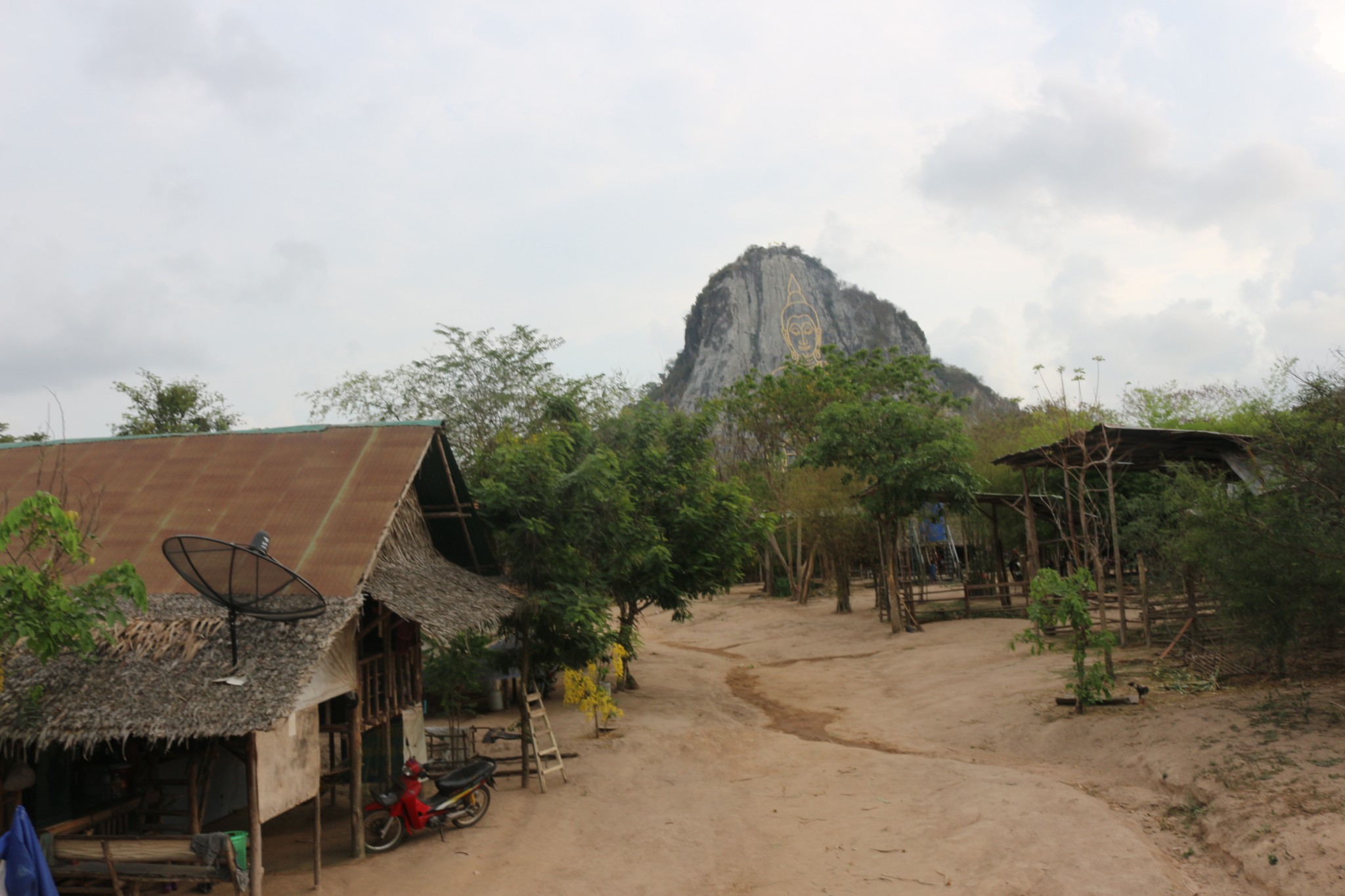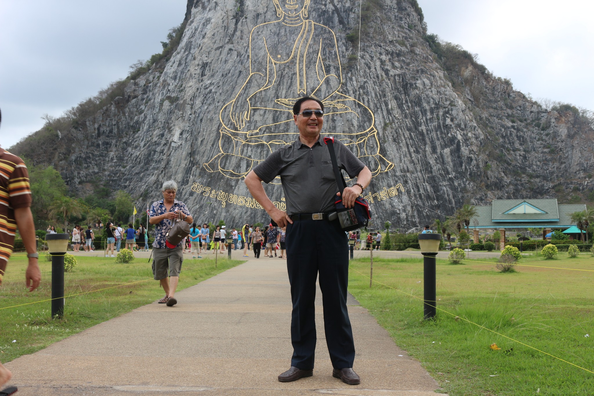 七珍佛山是为了庆祝泰皇登基50周年纪念,特别用雷射雕刻一座释迦牟尼佛的神像,此为芭达雅最大的释迦牟尼佛雕像,共用18吨重的24K金雕塑而成,此山中亦挖掘出许多的古佛像。七珍佛山令人大开眼界,传说这是一个高僧为当今九世皇找的龙脉所在,就着山形剖开一面山,削平山面,依山用4吨黄金刻了一座大佛,据说是用高科技镭射画出打坐佛像,用意大利进口的金镶嵌线条,金线耀眼,在佛的心脏处藏有释迦牟尼的舍利。打座的佛像慈眉善目,数里之外也能看到。由于科学的合理安排,再加上地理环境方面的原因,除正面外,左右两面较偏的地方也能看清坐在莲花座上的佛像金身。