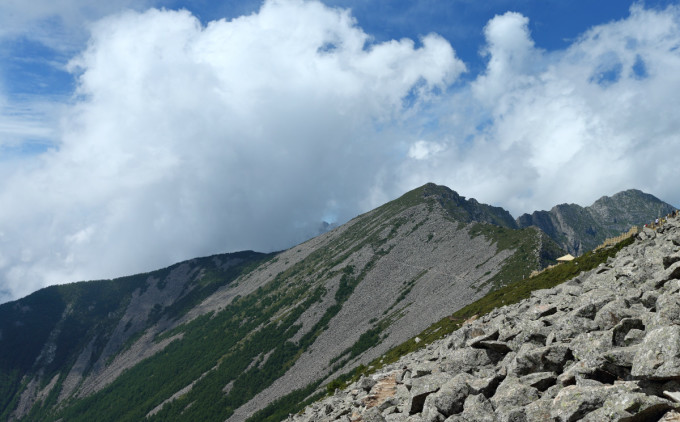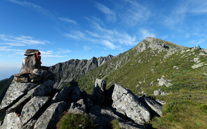 玛尼堆旁眺望拔仙台,依稀可见。