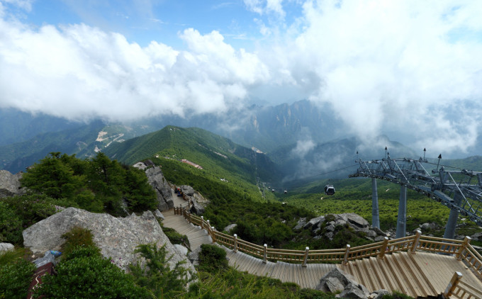 索道上站。新奇的天空,也许是突然地抵达,有点缺氧,开始头昏目眩。