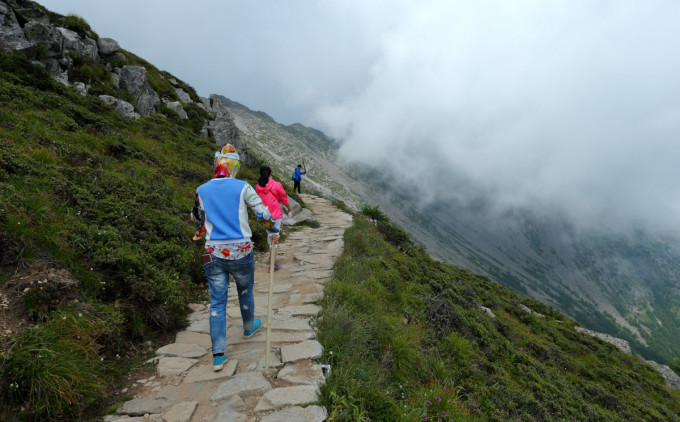 回望大文公庙。因为高反,行走都有困难,被迫请了民工把包背上去,还说定第二天再背下来。