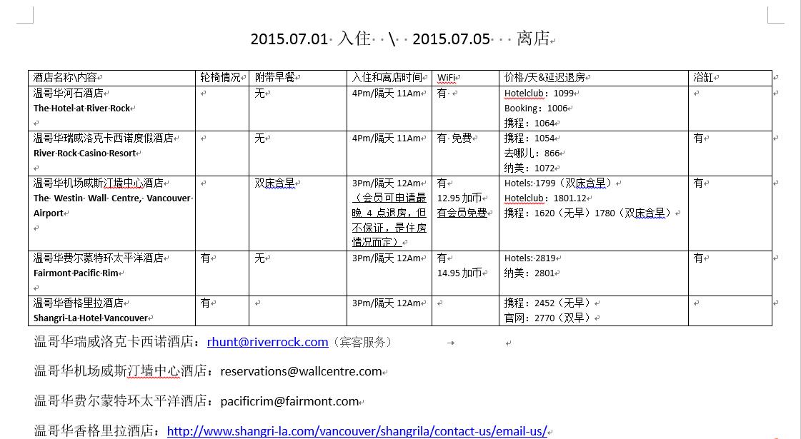 这次出行,在酒店的选择上先列出了很多备选: