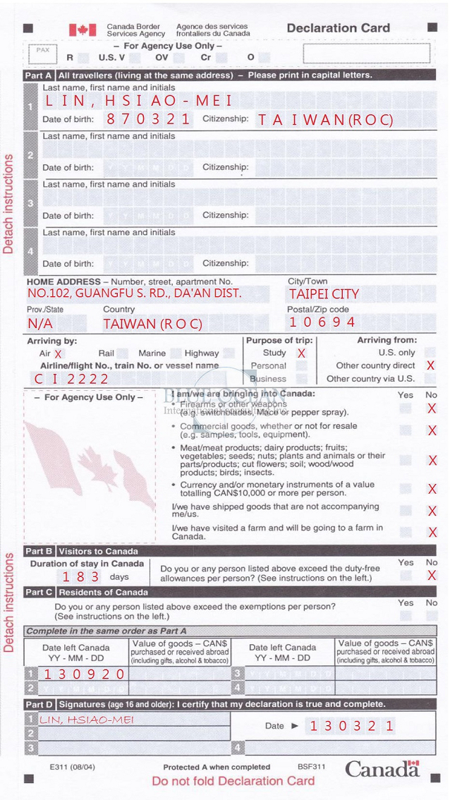 哎呀!忘了还有入境表......下图是加拿大入境申请表,由于美国的去年游记中有详细的中英文版本,今年就不赘述了喔~