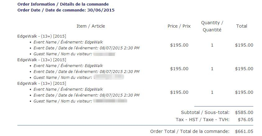 票价:$195(CAD)/人,爸爸鼓励着三只小猪都参加~~含税后总价:$661.05(CAD)