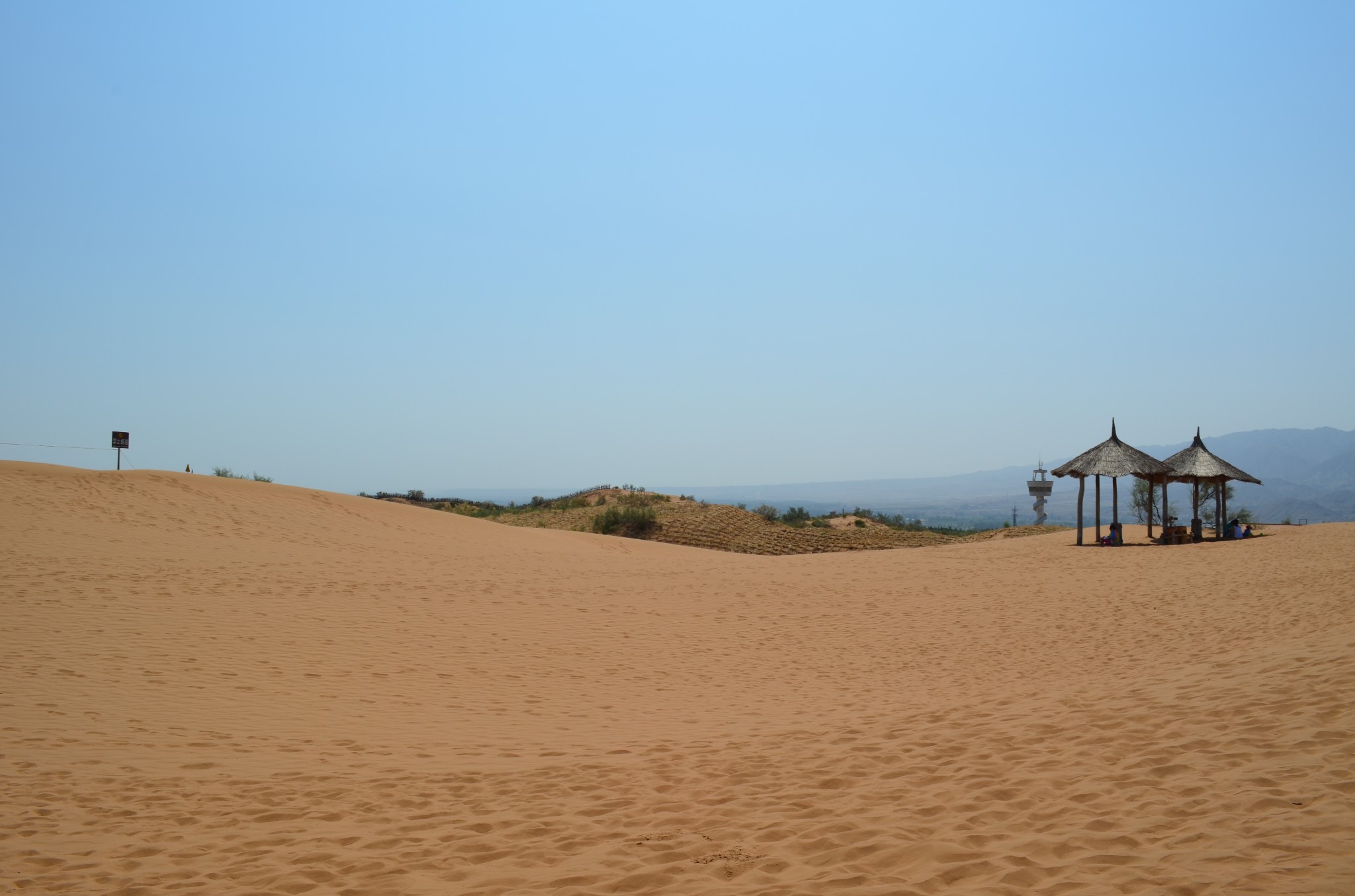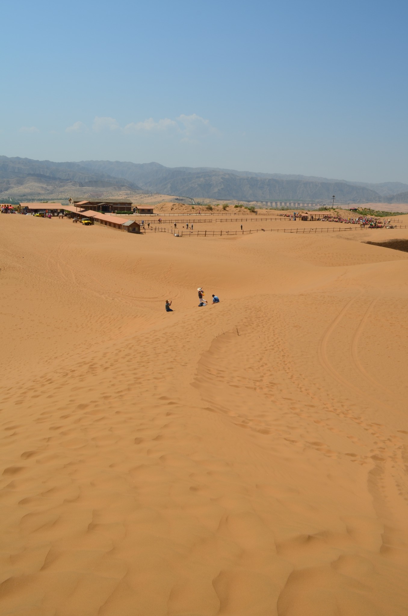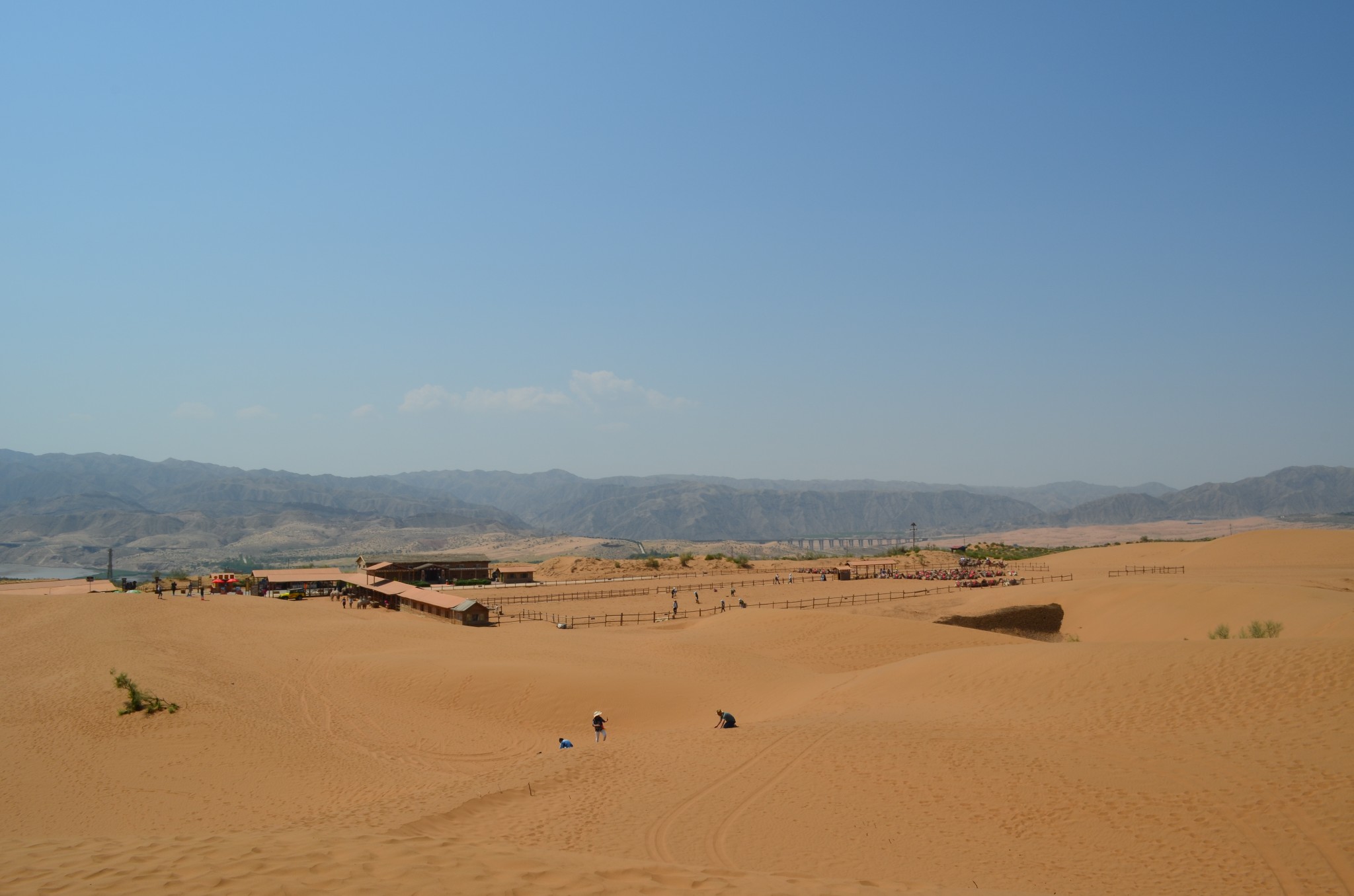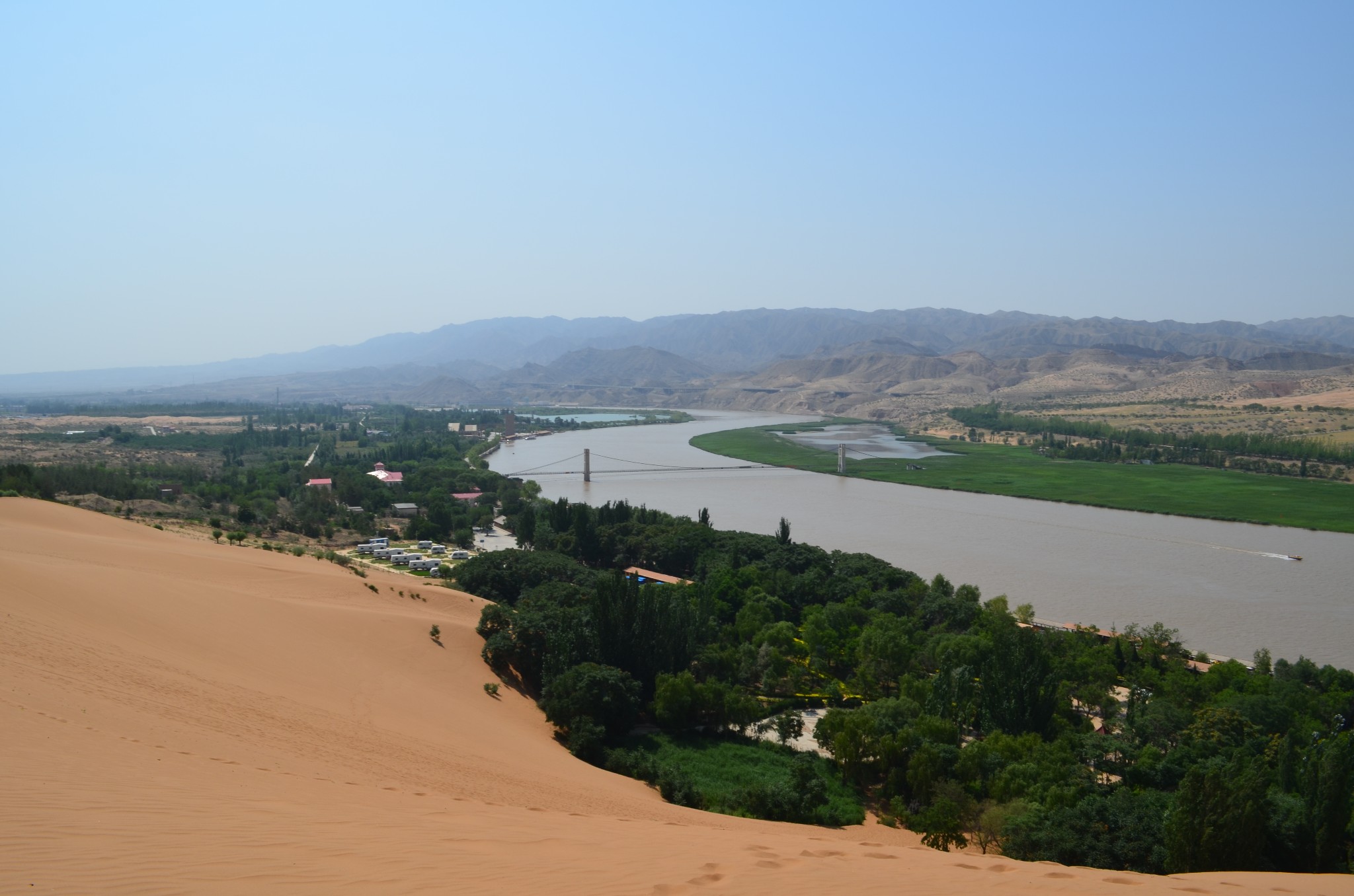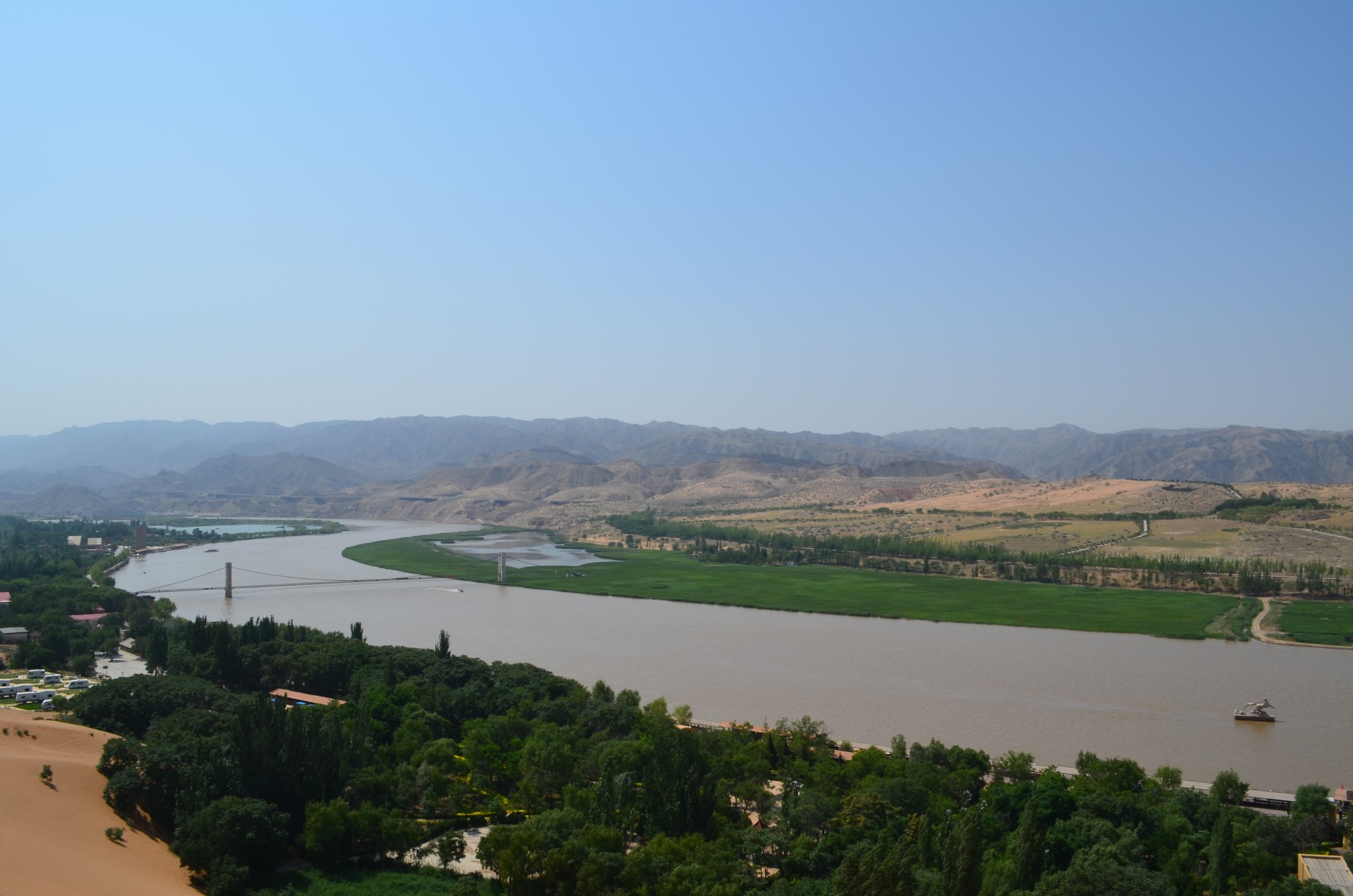 由于联票里附送的扶手电梯停运,改乘缆车登上沙山。没走两步,便可望见中华民族母亲河那雍容华美的腰身。