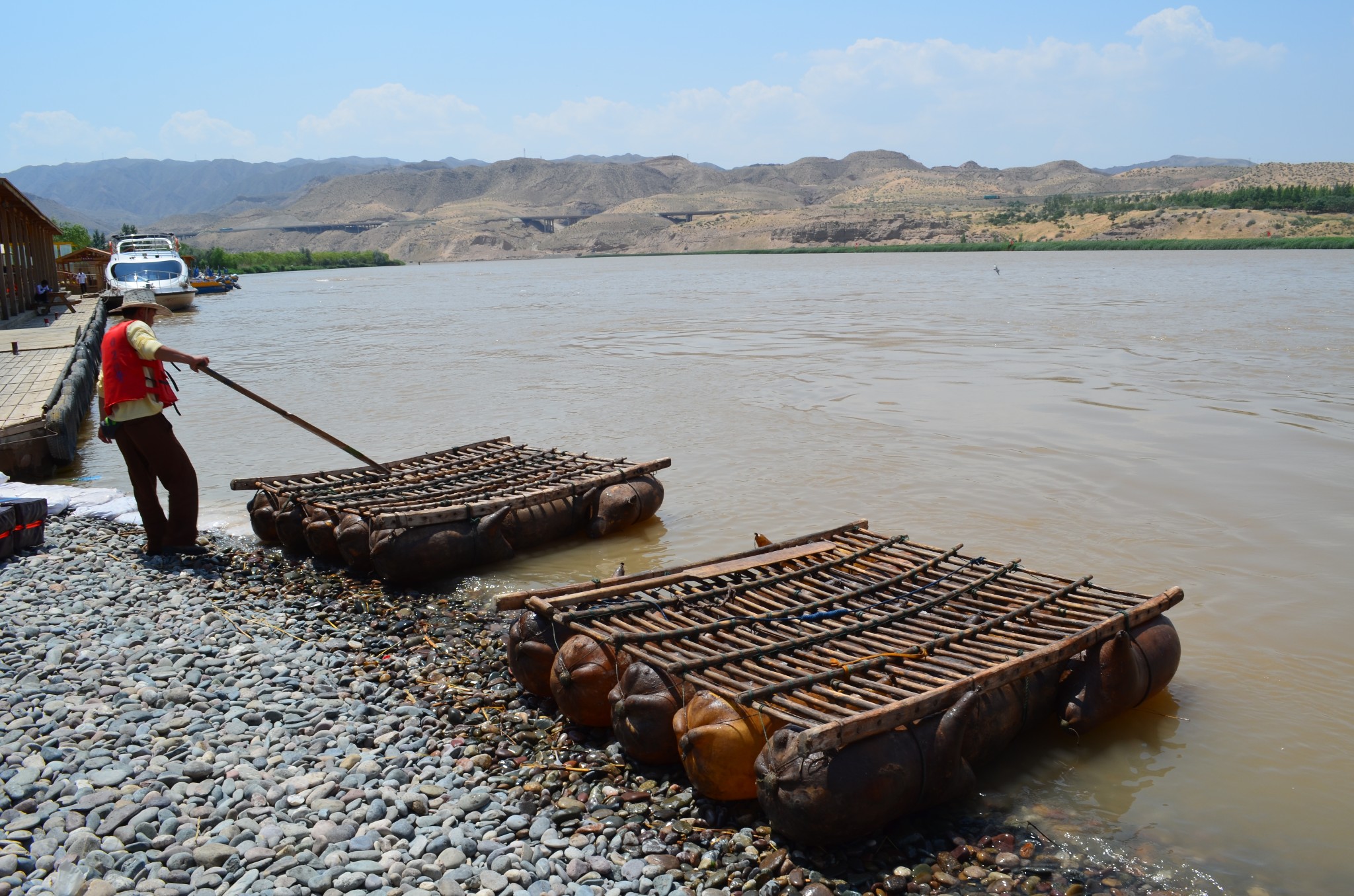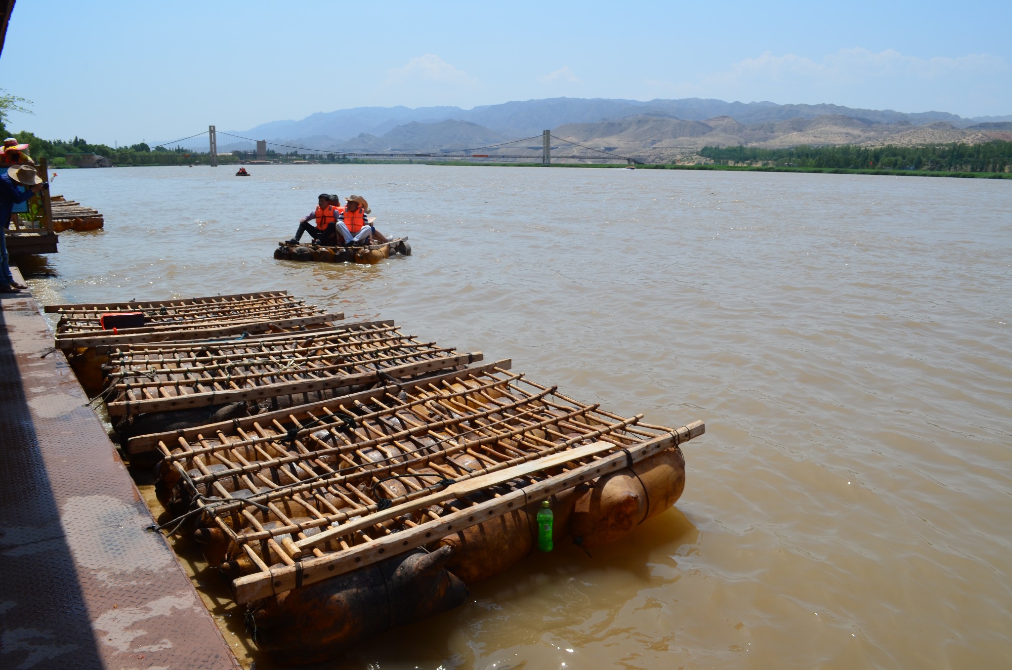 来到沙坡头,羊皮筏子是必须要坐的,于是买好快艇和皮筏子的联票,先坐快艇到达核心景区再说。码头上岸后,千万不能马上去坐羊皮筏子,因为那样你就直接沿着黄河回到出口去也。