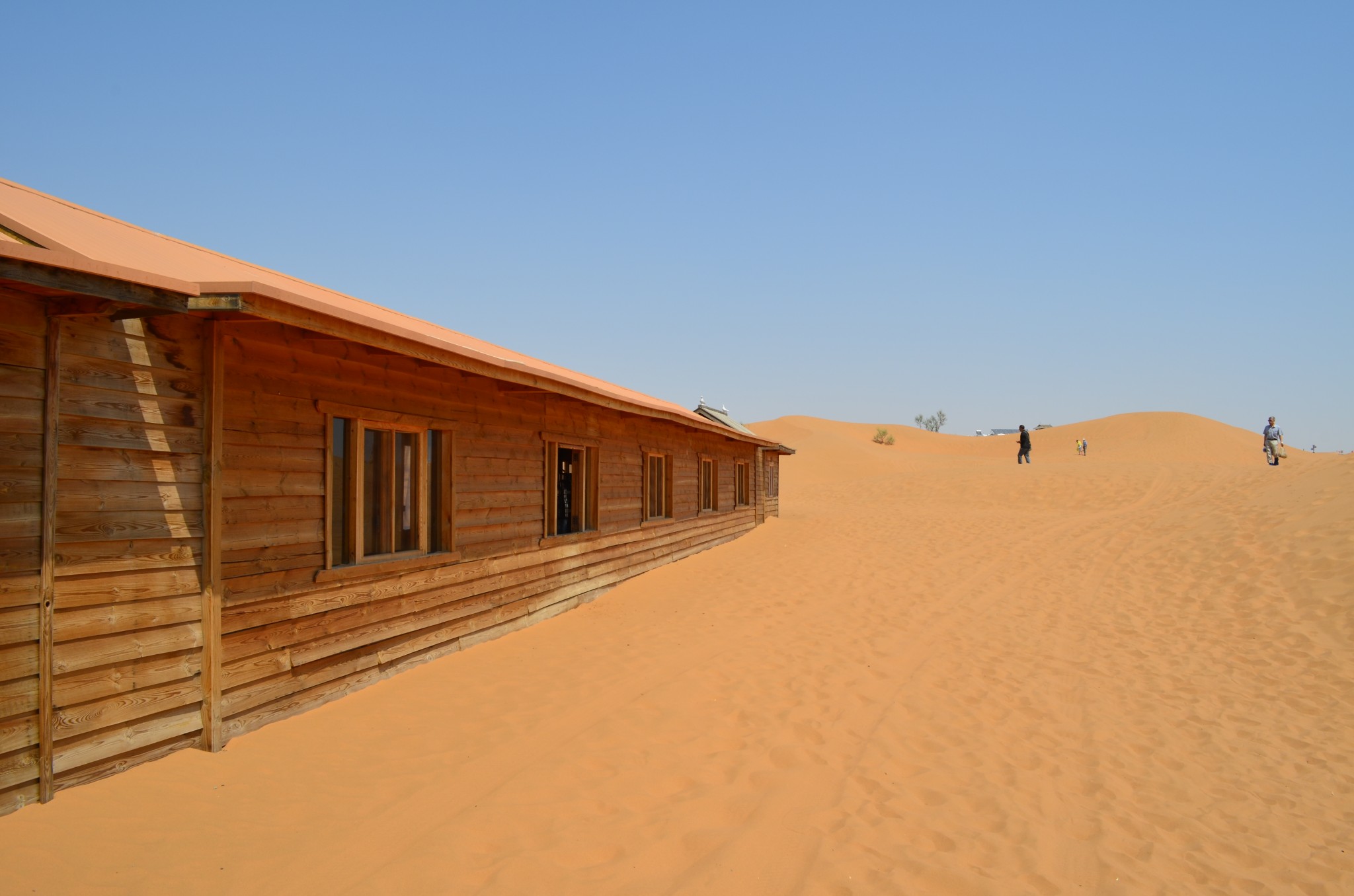 包兰铁路将沙坡头景区分成两个部分,一个是黄河景区,另一个是沙漠景区。迈过黄河,走进腾格里沙漠,必须从铁轨下的火车涵洞穿过,如果正巧赶上火车经过,那么便似乎有一只史前怪兽正在头顶奔腾,让人不由新生惶恐。