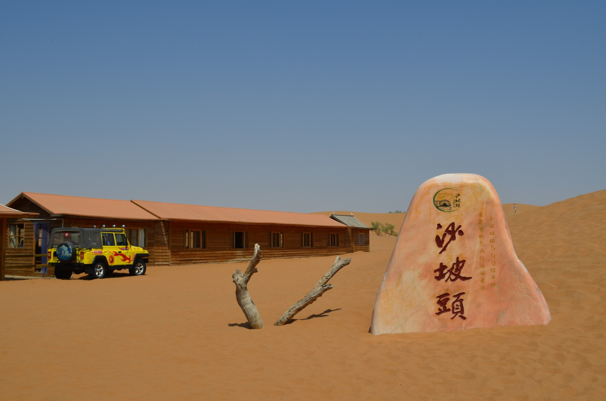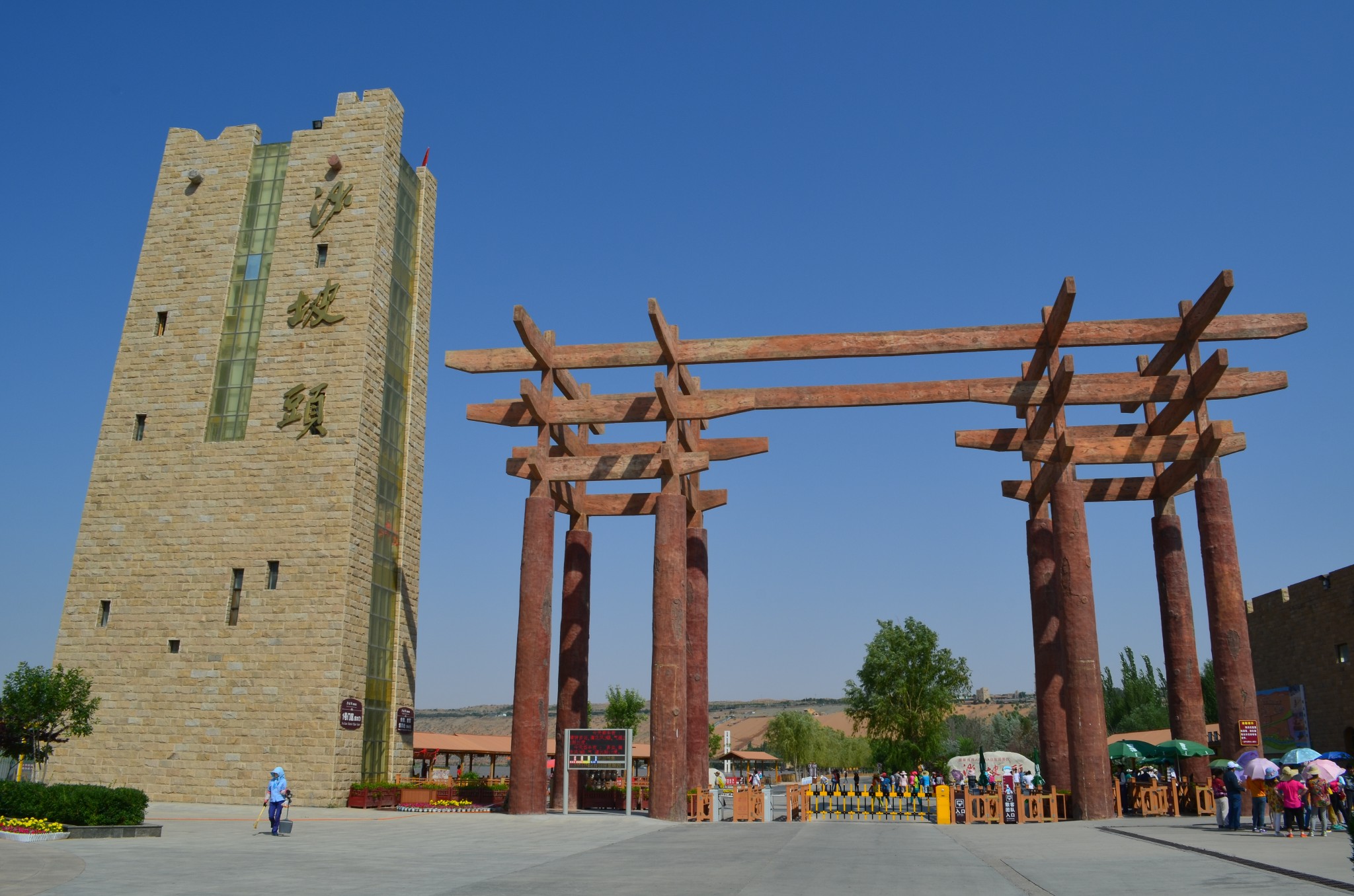 银川市区到沙坡头大概有两百多公里的路程,沿着京藏高速转定武高速再转S202最后再转景区大道,一路狂奔,上午十点前便已到达沙坡头黄河景区大门。