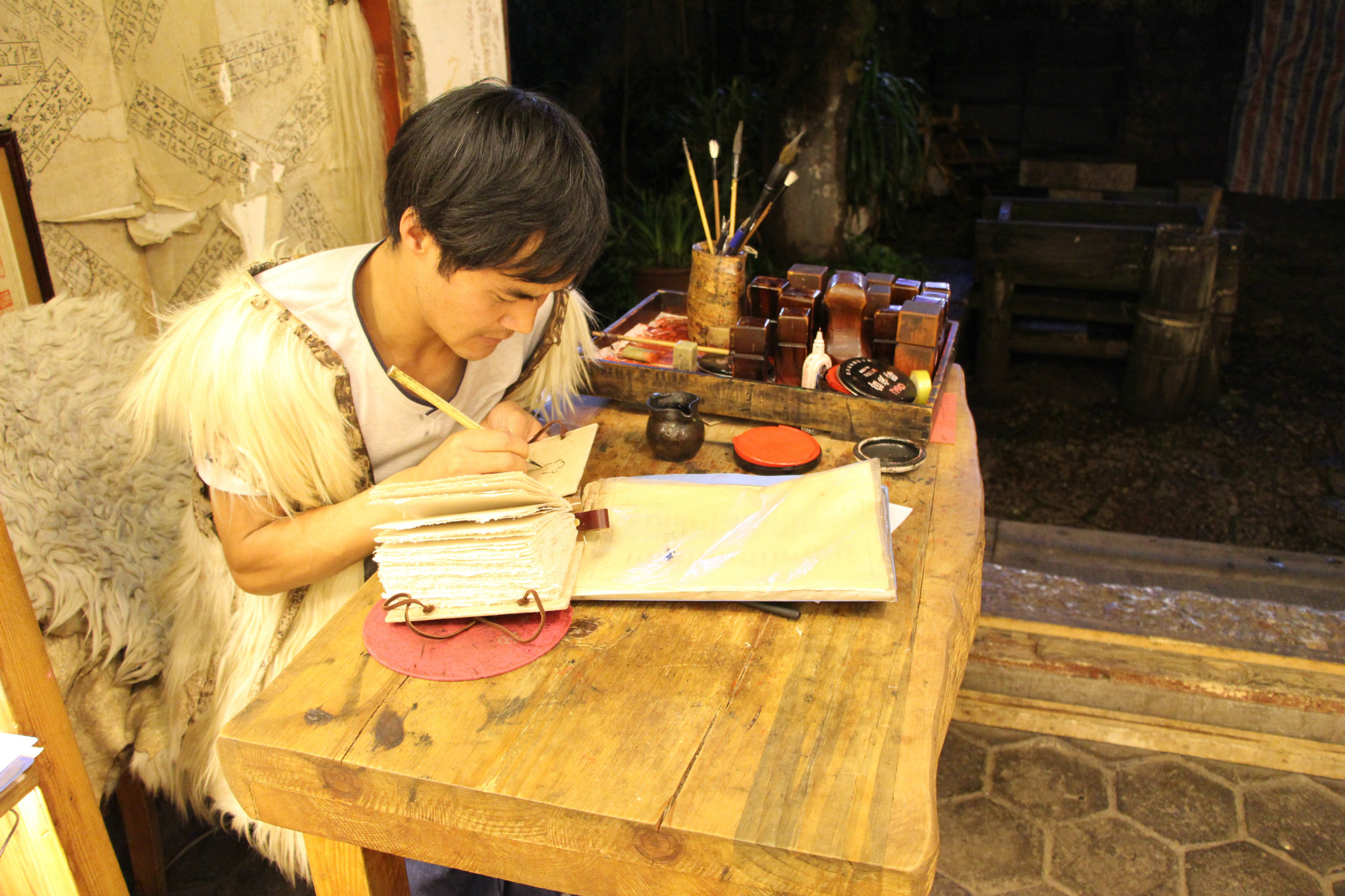 晚上住在丽江古城,酒店很有特色,像北京的四合院,相处了几天的团友也不那么拘谨,团里有家东北人,尤为热闹。晚上丽江又下起了雨,闺蜜有点感冒就先回了酒店,我一个人在丽江古城逛悠,买买纪念品,寻找寄明信片的地方,摸得七昏八晕终于赶在人家要打烊之前到了,一路上紧赶慢赶,手机没找到,吓得半死,好不容易找到了时间不够了,我只寄了两封慢递。我是喜欢这种慢递的,那种岁月沉淀下来的文字尤为感人,当初写下来的心情到将来收到的心情是存在惊喜的,而且当地明信片真的具有很好的收藏价值,我喜欢留下这样的痕迹。回到酒店已经半夜12点了,雨也下大了,奔跑在古城的道路上,虽然淋雨但还是觉得这样的状态也不错,你可以自己把快乐带给自己,不用想太多。