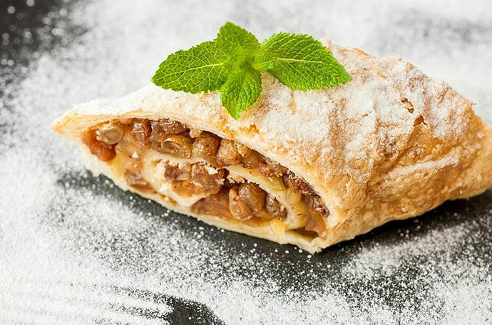 喜欢吃甜食者的推荐——我们还可以去吃吃苹果卷,它是一种包有苹果、面包屑和葡萄干的薄面卷。另一种衍生甜点是被奥地利人称之为“包有李子酱的马铃薯团作的口袋”的奶酪面卷,一般需要配有奶酪和面包屑一起食用,风味更佳。