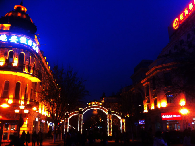 路上偶遇哈市的灯光,感觉还OK,就下车走走吧。