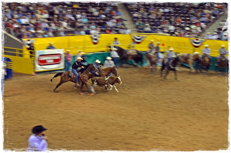 那是前年七月的一个美丽的傍晚。俺的外甥女一家从东部来俺家国事访问,带他们开开“土荤”,看牛仔竞技。