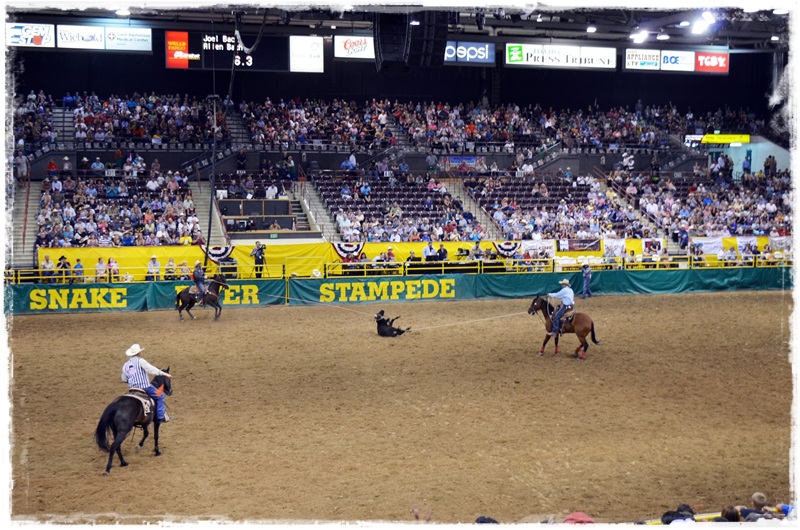 前几天带孩纸去看了一次rodeo,中文应该叫个牛仔竞技比赛。俺家老板在那个场子有四个固定座位,不管有什么活动他都有购买优先权。所以每年到七月份办公室里就问谁去看。今年又是俺们这个赛区的百年纪念所以显得格外隆重,这个赛区的全名叫snake river stampede,1915-2015。全国有800多个职业牛仔竞技,俺们村这个能排上前十,所以也算是比较牛叉地!你们城里人可能会有人觉得这个比赛有虐待牛牛的嫌疑,可实际情况是这些个技能在养牛场大多还有用武之地。这也是美国农业文化的一部分。也是广大牛仔、牛妹们显摆各自牛仔装束 - 牛仔帽、牛仔靴、牛仔裤(这个就全靠看身材了!)- 的一个重要场所!