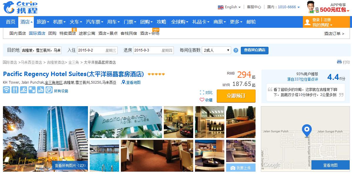 Pacific Regency Hotel Suites(太平洋丽晶套房酒店) 酒店:410RMB/人/2晚 携程预定