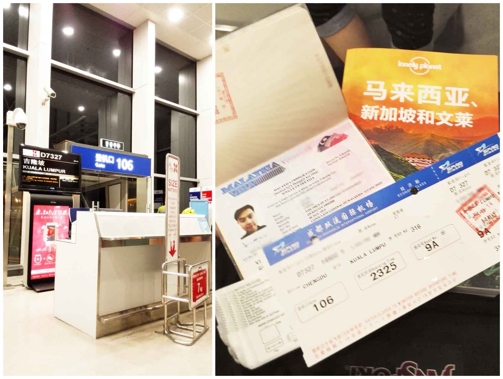 AirAsia亚洲航空(长途D7)航班;在淘宝上购买,提前一点就能买到相对较低的机票,至于怎么抢票,我并没有什么研究,购买了之后向你的邮箱中发确认单,这很重要,请将往返的行程单打印两份,去成都机场会检查返程的行程单和签证,吉隆坡机场也会看。