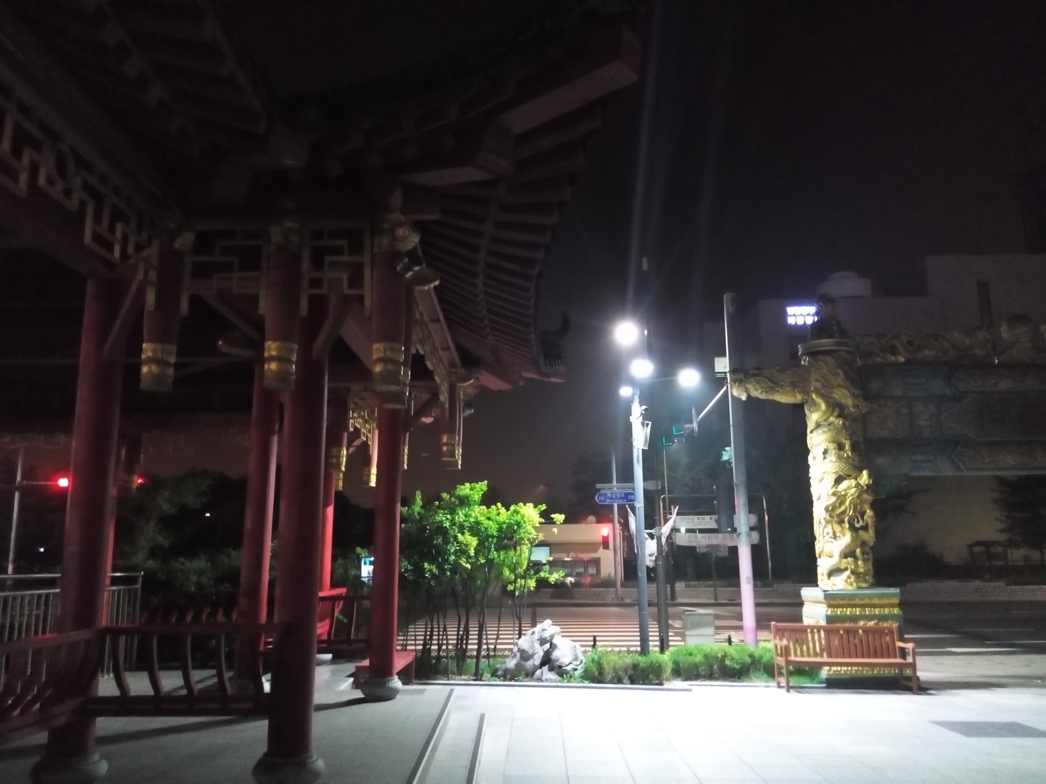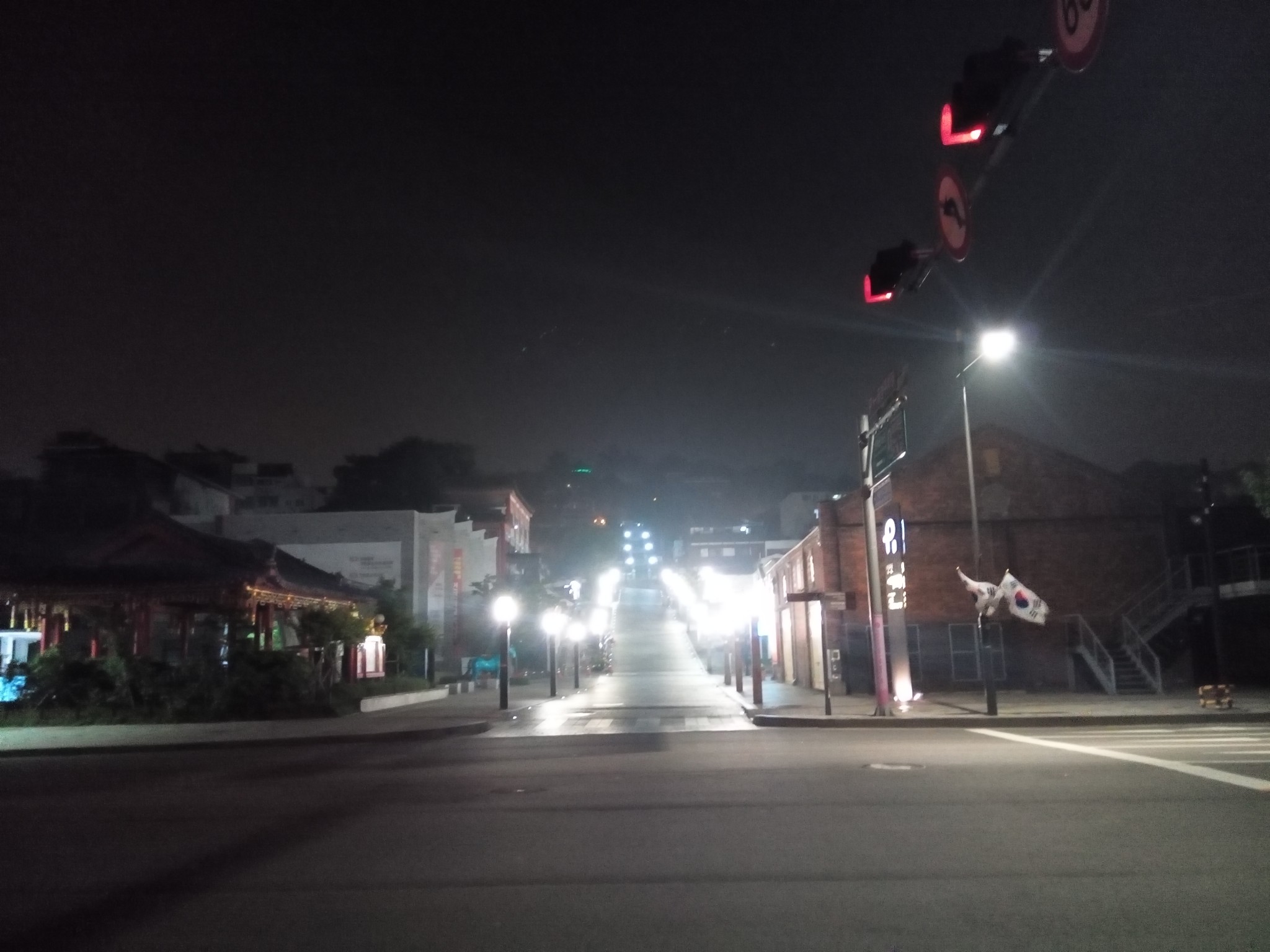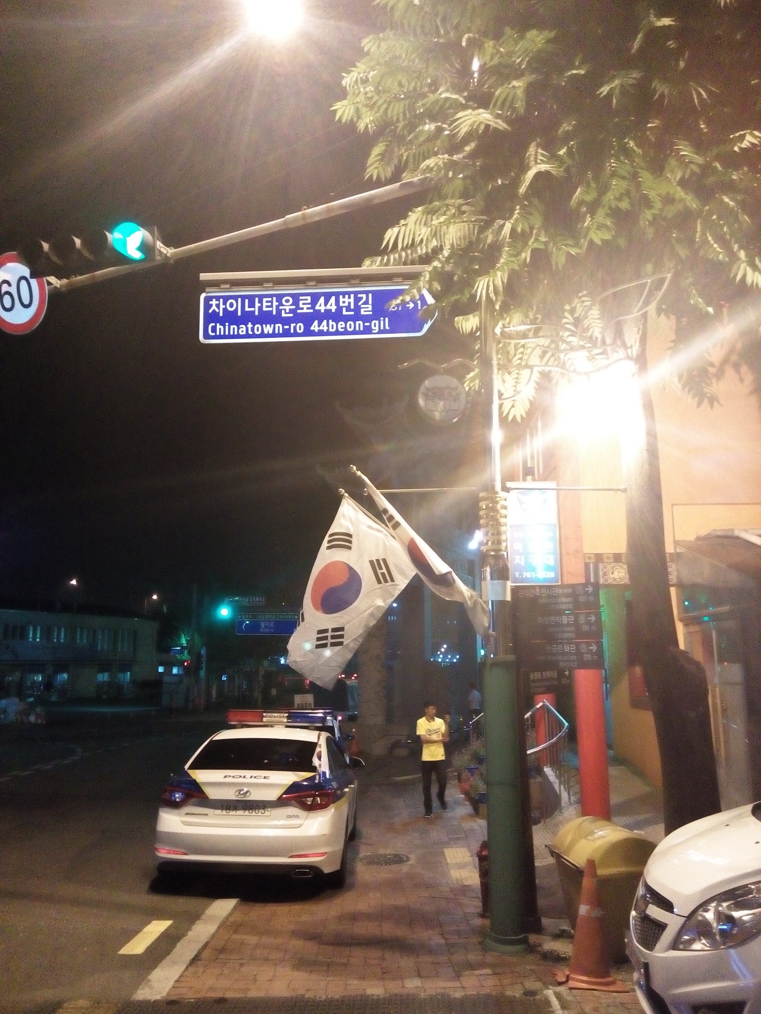放下行李,洗漱,然后休息,11点,我们一帮人果然不甘心就此睡觉,于是拉帮结伙地就溜出酒店去溜达了。满大街的韩国国旗,然后基本看不到行人的灯火通明的街道,还有和成都的闷湿空气不一样的凉爽的半岛气候,一切都显得那么轻松惬意呢。