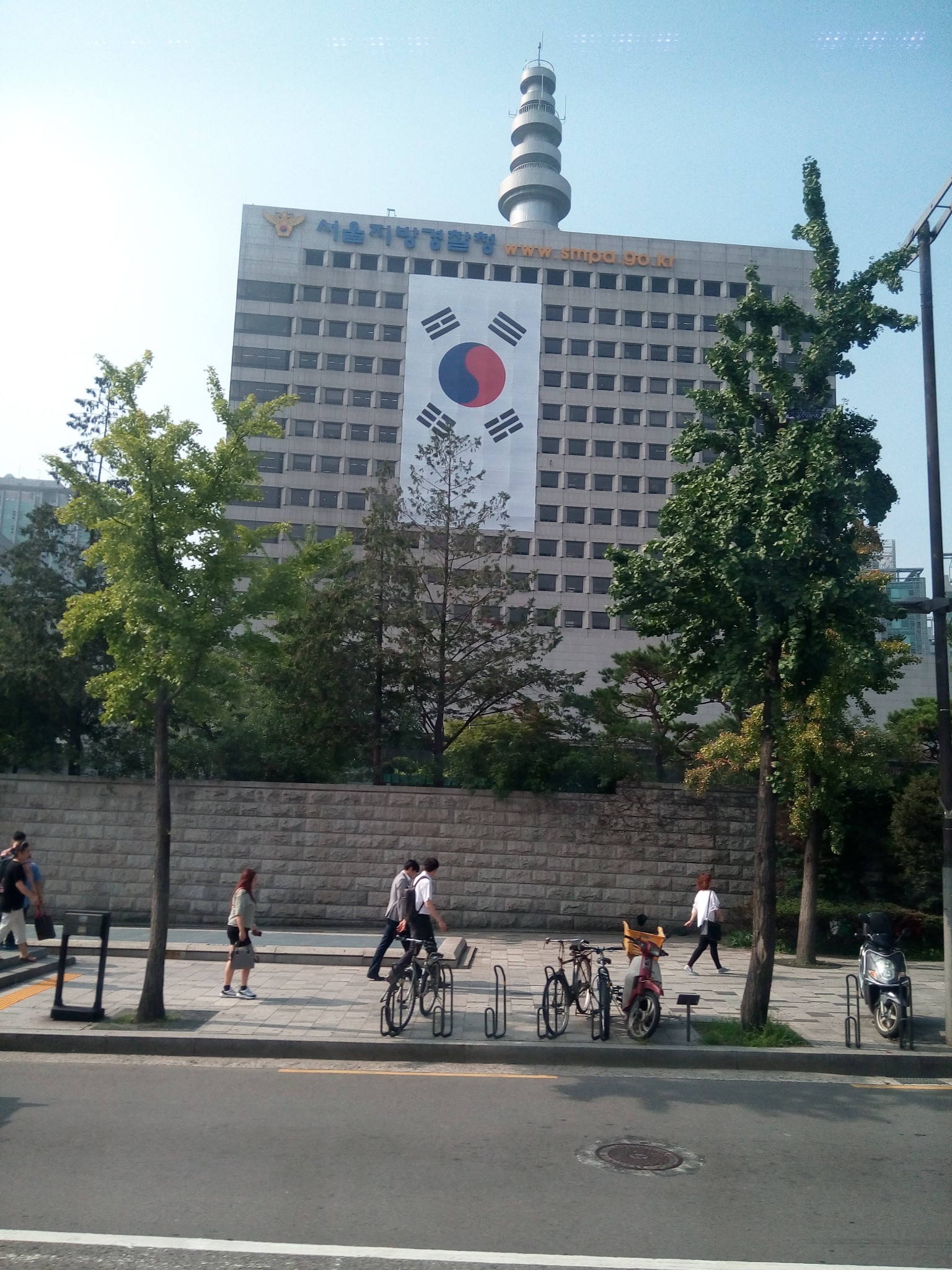 7点叫早,7点半就出发了。来之前看天气预报说会一直有雨,结果在韩国的几天都是大晴天,金导说因为我们都是贵人,我们一来首尔,暴雨就下到济州岛了(后来我们一去济州岛,又是大晴天)。