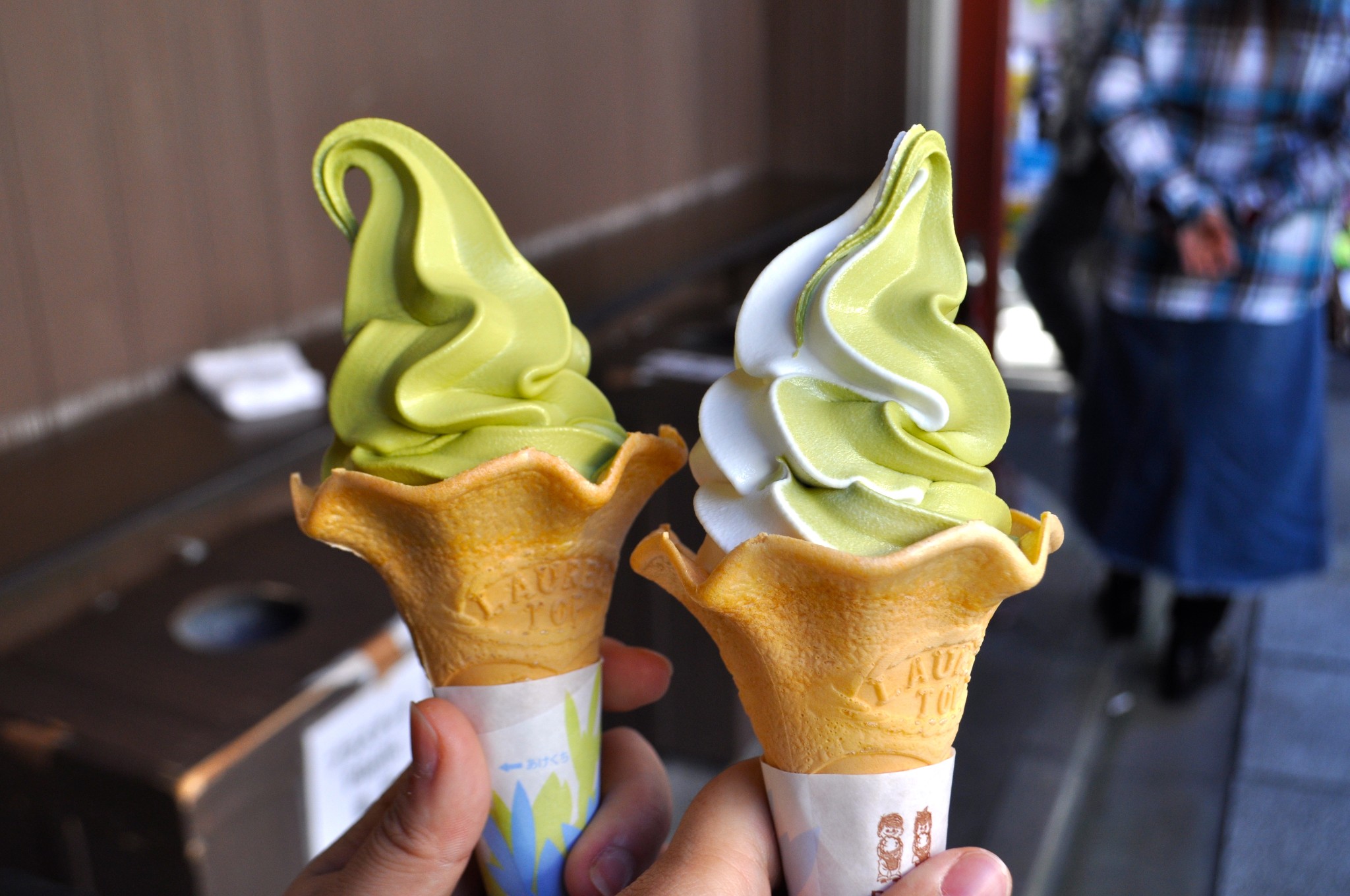 抹茶冰激凌,第一次是在浅草寺的商业街上买到的,后来到京都也吃过~
