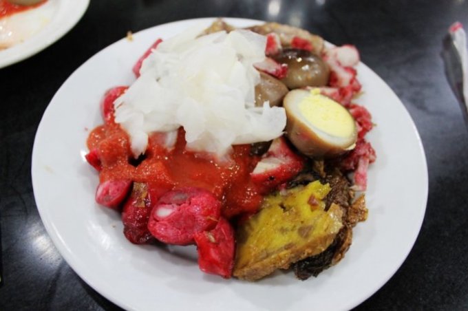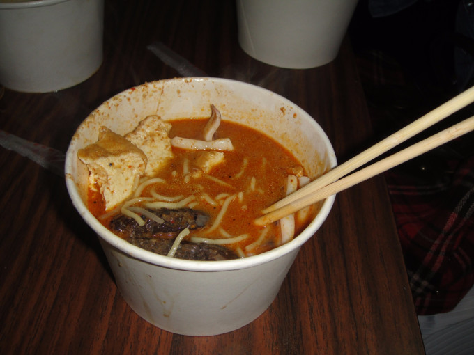 好吃在哪儿:【必去】店里熬的沙茶酱很浓郁,据说是加了椰子汁熬制的。面条和常见的北方面条不一样,是黄色圆条的湿面条。料可以自己任点任加,很新鲜。不过店大了讲求效率,服务员都用吼得,吓死宝宝。早一点去,我们9点半就去店里,还是要排队……不过味道是很值的。面吃完还把汤哧溜哧溜喝完,过瘾。