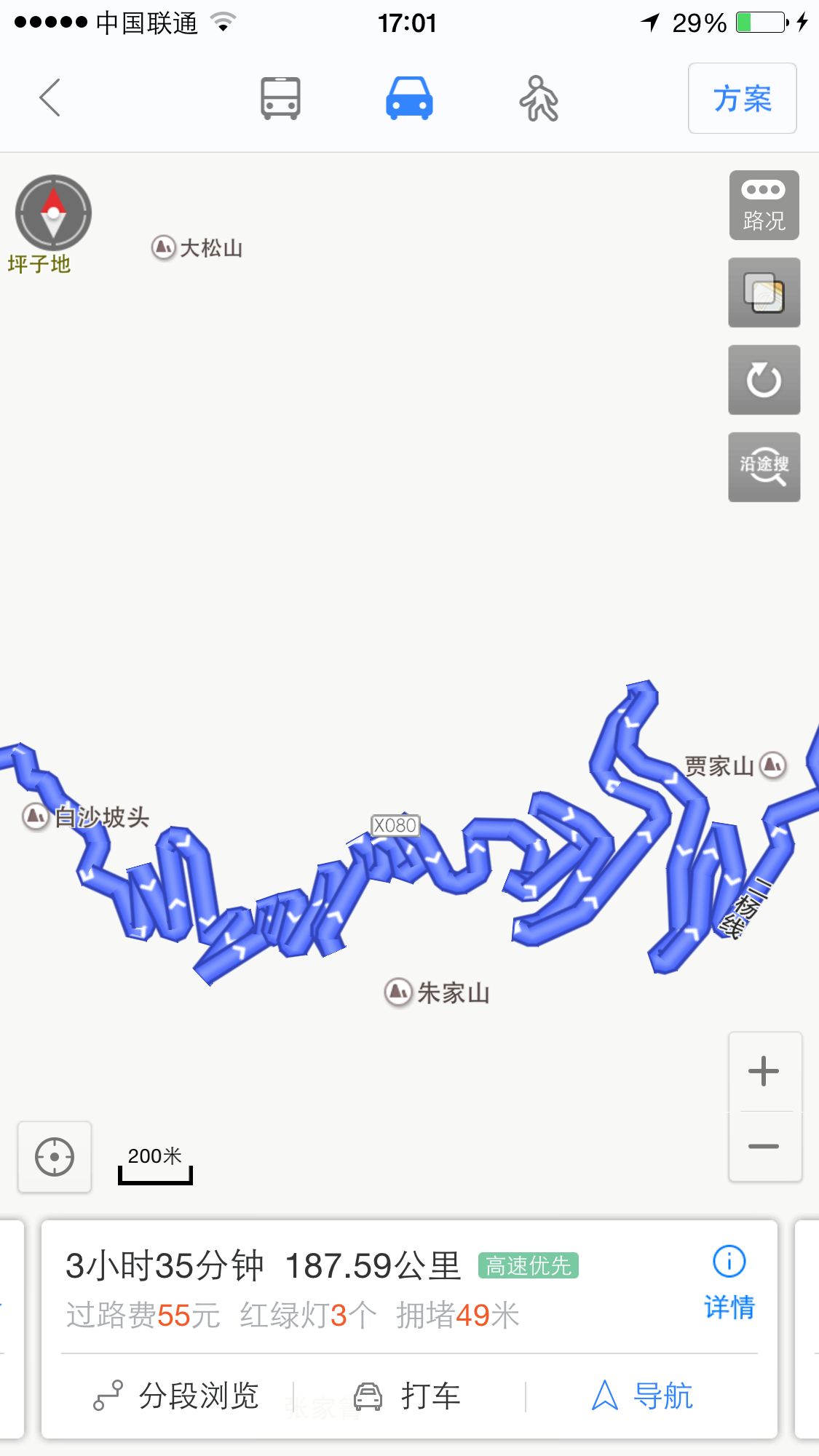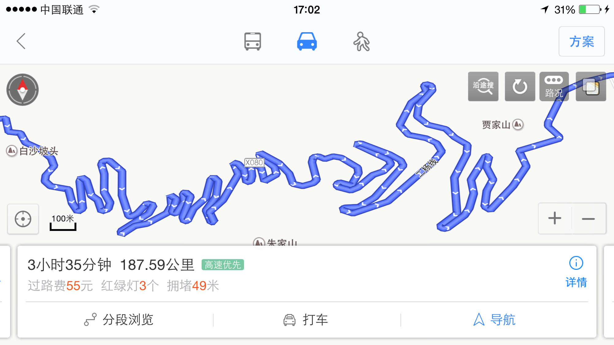 看当时的导航,地图上这哪是山路十八弯啊,80弯还差不多,亏得我们是越野车的类型,不然非得坐到晕车。