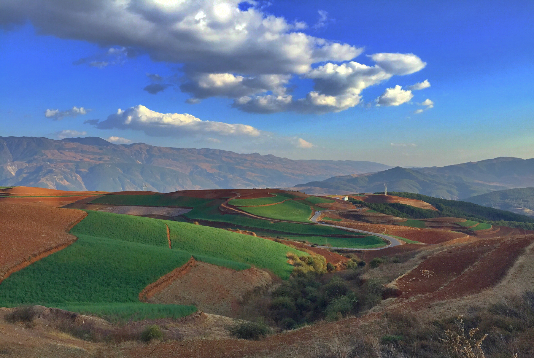 (引自百度百科)东川红土地位于昆明市以北偏东方向,属昆明市东川区管辖下的红土地镇。从昆明到达景点中心行程约250公里车程,主要景点在海拔1800至2600之间。因云南东川高温多雨下发育而形成红色的土壤,专家认为是全世界除巴西里约热内卢外最有气势的红土地,而其景象甚至比巴西红土地更为壮美。