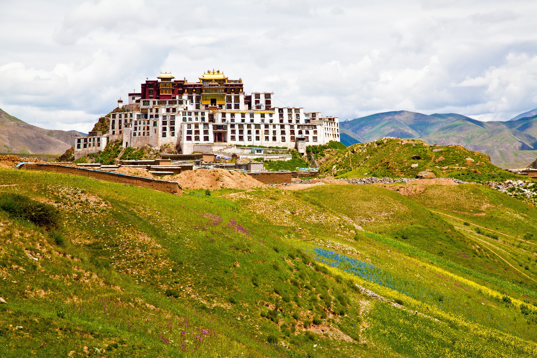 (赞丹寺,下面白色的是僧舍,上面白色的是法堂)