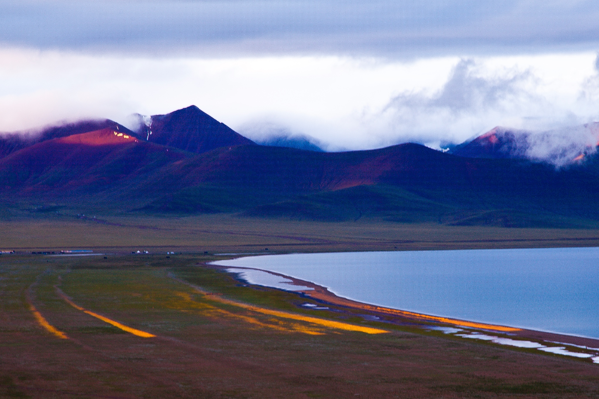 到了湖边天气仍不甚好,还下了会儿小雨,只能把一切希望都寄托在明早的日出了。