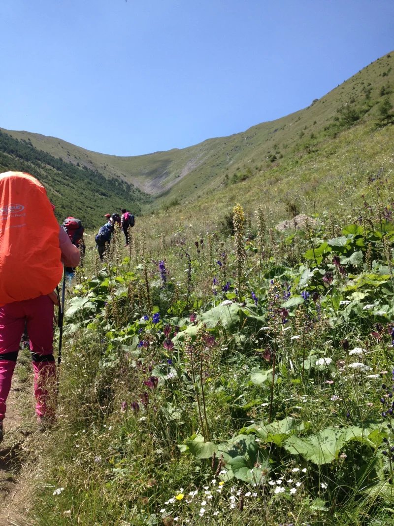 ,我们大家一路看景看花聊天差不多2个小时就到了装备的放置地。而后重装上山。有美景呦上图