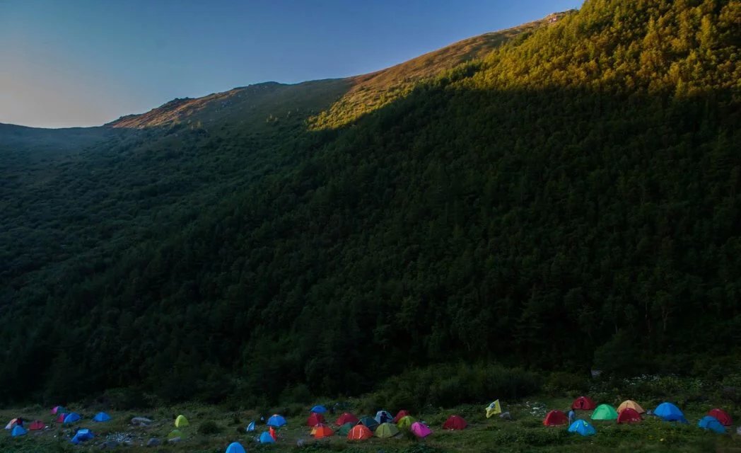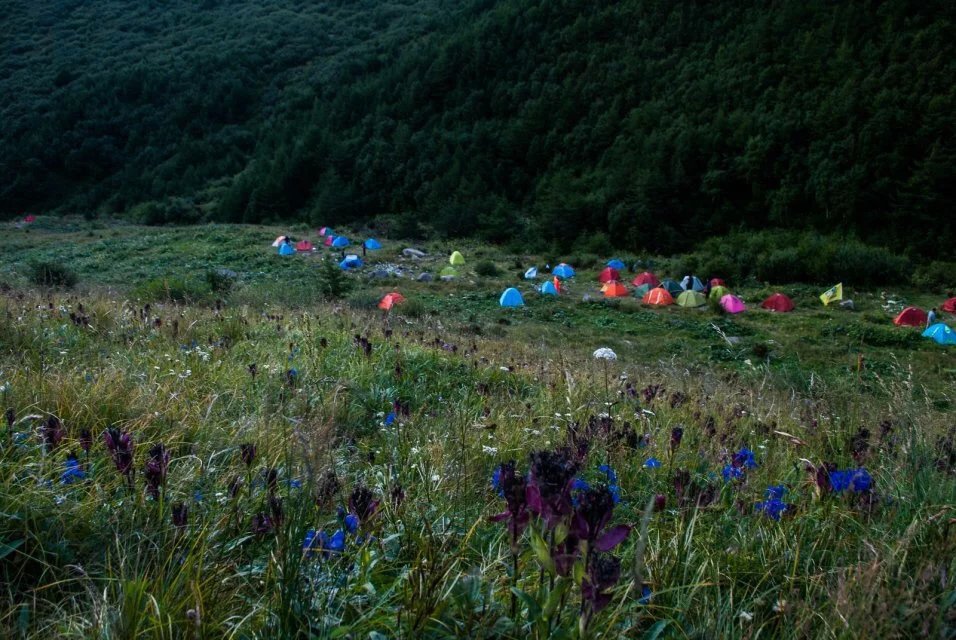 经历了8个小时到达了2400米扎营地,放下包袱扎营轻装冲顶东台2882米呦