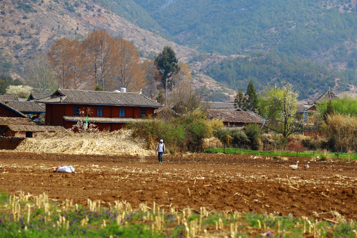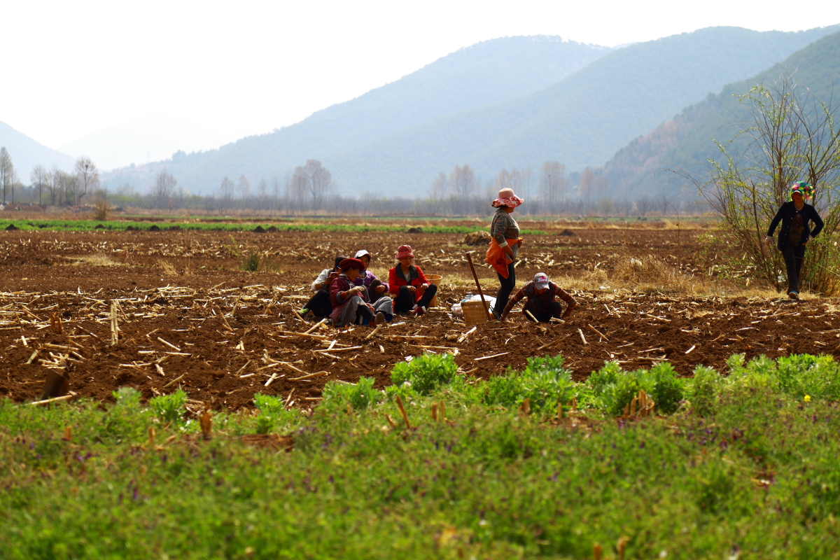 从鸟觉山下来可见一大片庄稼地,几个妇人正在耕种。