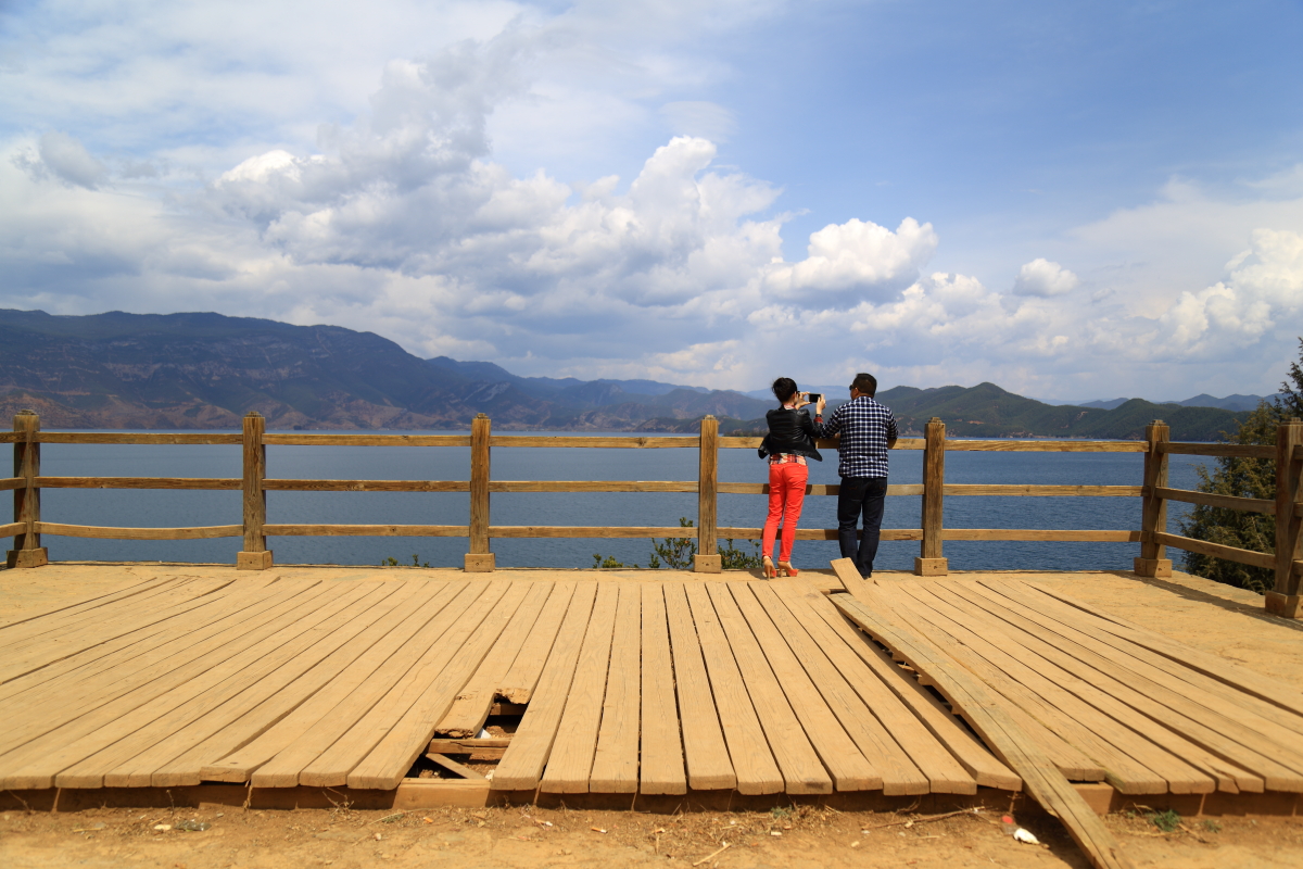 情人滩前面有一个观景台,宽阔的湖面一览无余。