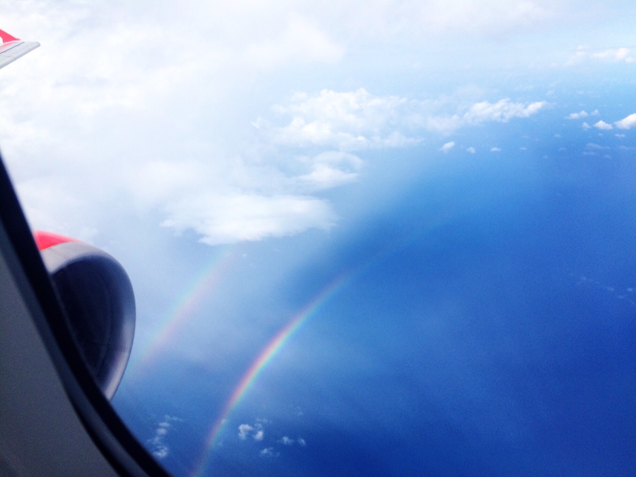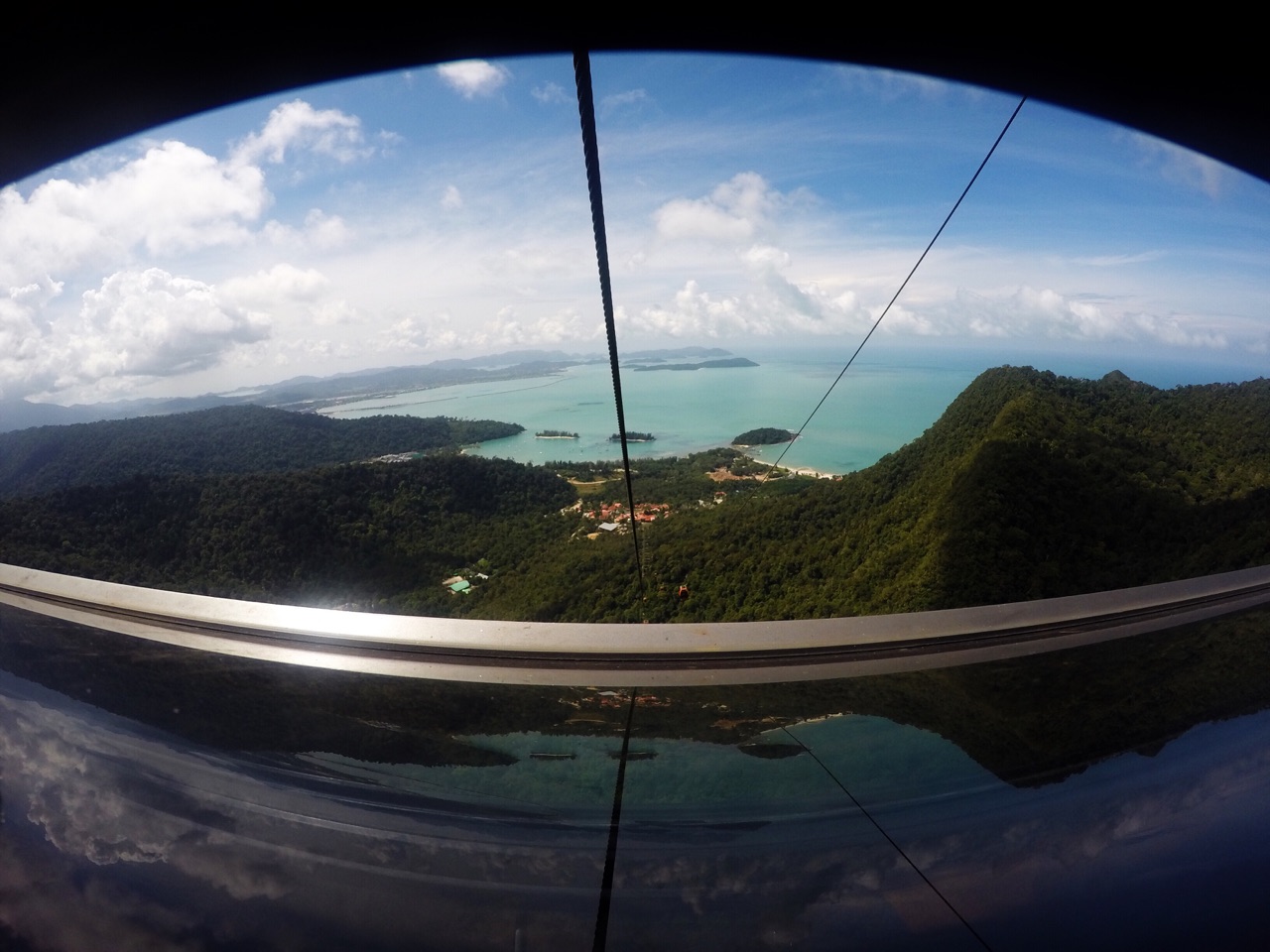 兰卡威距离吉隆坡一个小时的飞行时间,由于8月是雨季,所以空中云系较多,但幸运的看到了彩虹,而且还是双的
