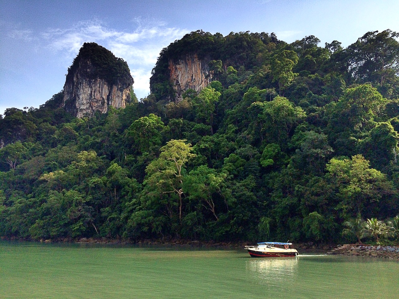 行驶大概10分钟就到了第一站,孕妇岛的森林公园,主要去看孕妇湖,是兰卡威地区最大的淡水湖,实际上应该是一个死火山的火山口形成的。上岛需要购买门票,一人2RM。船长上岛前会告诉你一个小时后开船