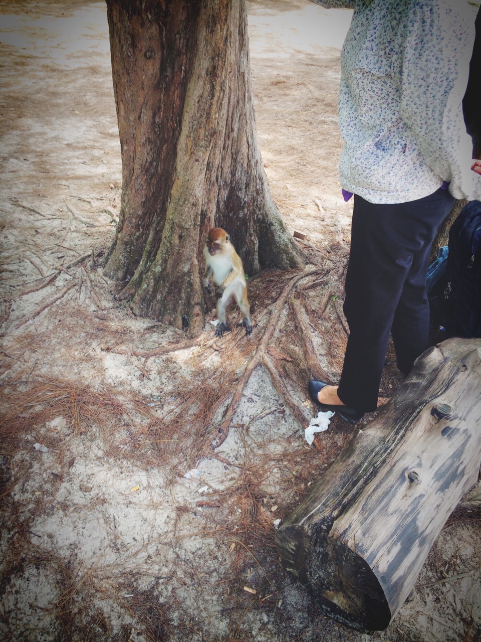 森林中猴子很多,千万不要让他看到塑料袋或者吃的东西,他们会上来抢,也不要去拿吃的挑逗猴子,小心被抓伤