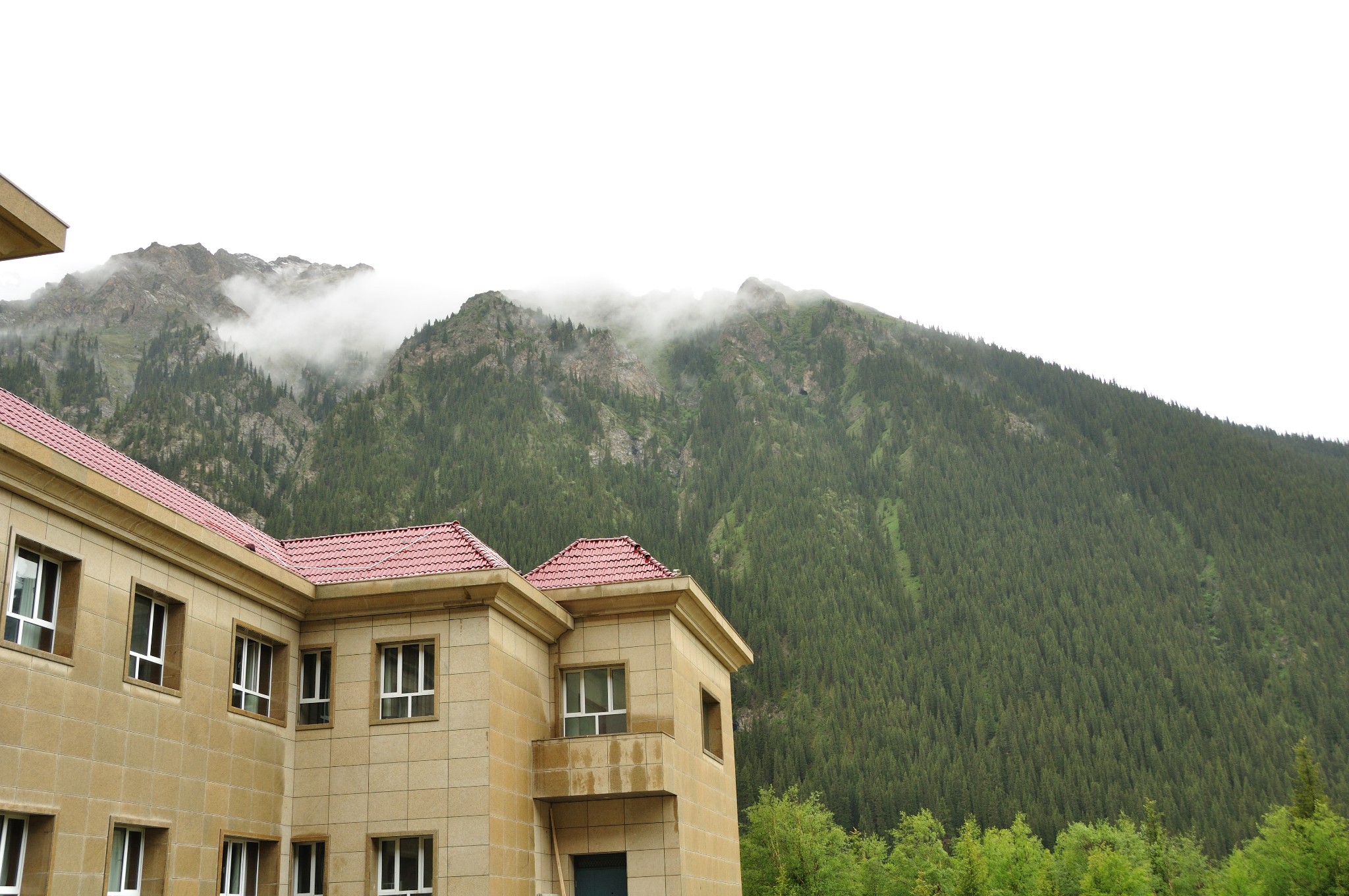 我们下车在高大上的夏特温泉生态大酒店门口避雨,也好好的与前台小妹、经理和“老板”商量了我们住的问题。他们说正在装修,很快(6月25日左右)可以开业,有水、电,差一些东西,我们央求能给我们三间房住就可以啦,其它都没所谓啦。谢天谢地,好人碰到好人啦!六个人600/酒店,太谢谢啦。钥匙牌开门老出问题,害的前台小妹、保安来回跑上跑下,真的不好意思,辛苦他们啦。安排好房间,开窗就是峡谷、森林、雪山,雨变小、雾开始散去,简直住在仙境里。