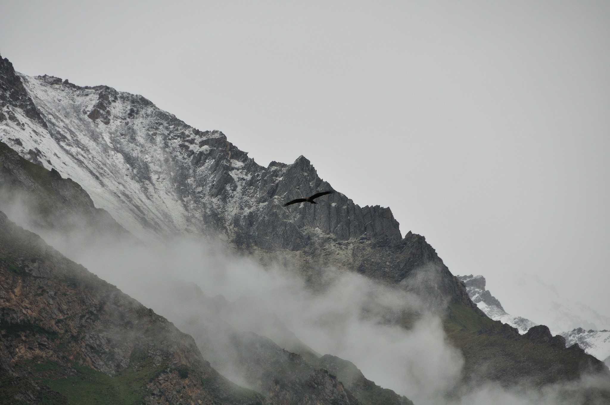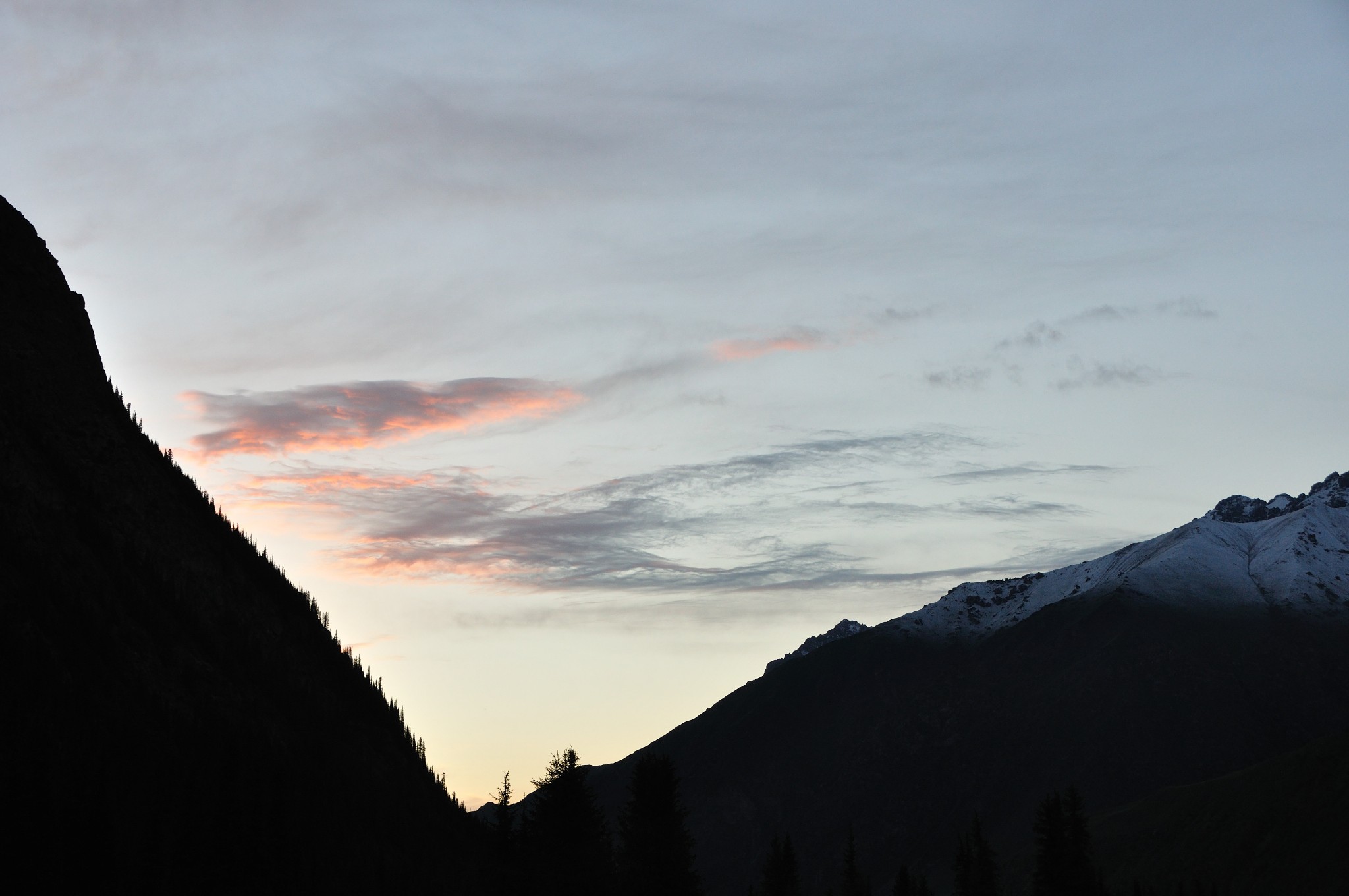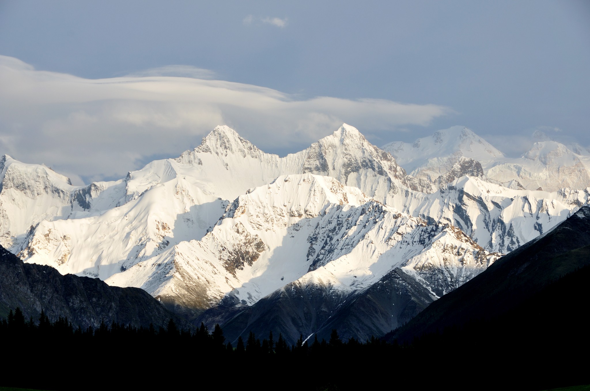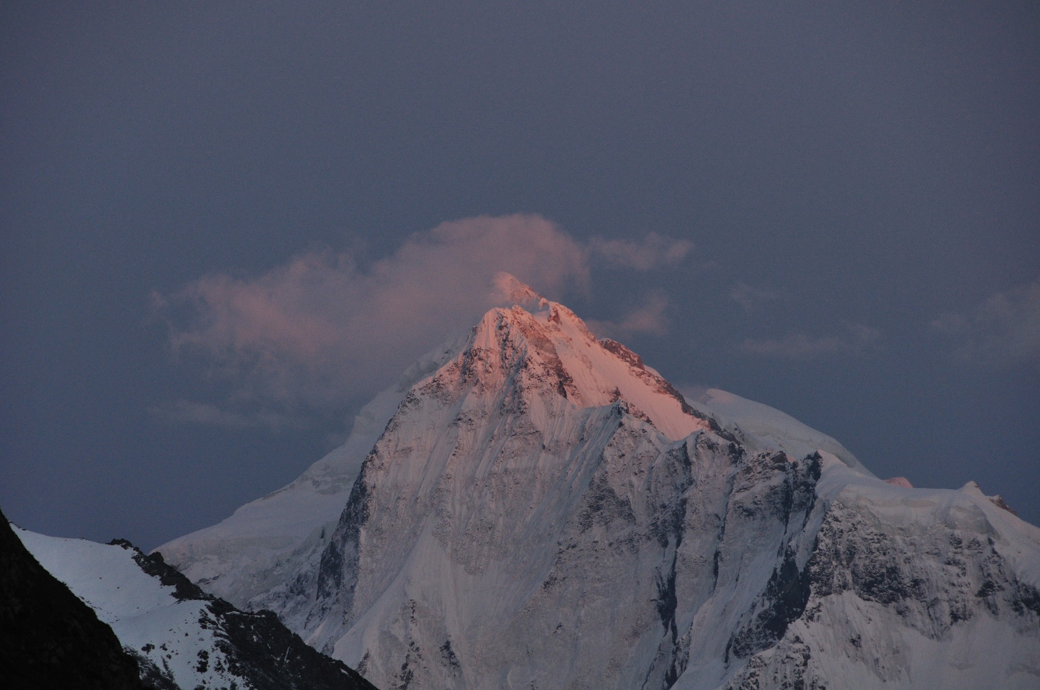 雨后新修的路电瓶车不能走,只能在丛林间穿行啦,到达车不能再前行的地方,约好师傅来接的时间,我们继续徒步前行。雨后的草地很湿,我们的鞋都湿透啦,只有靓女翁带了雨鞋套幸免。雨停,天也越来越亮,我们也走了一段路,考虑到人少、回程天会黑就没有继续走到当地牧民顶上长草木头房子处,就在在山谷、河边、草地上慢慢拍照慢慢等日照金山,摘到两大蘑菇,拍完照忘带回了,可惜!拍到两只小小鸟,兴奋!慢慢的木札尔特冰川上的云雾上升变成旗云,金色的阳光洒在冰川上,失望、下雨、鞋湿、等待,所有的所有都是值得的。依依不舍一步一回头遥望着冰川回到坐车处,小伙子一早已等着我们啦,再赞一个!
