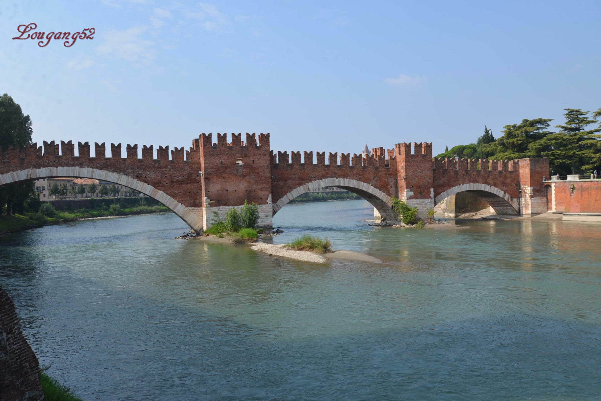 维罗纳城内有一条起源于阿尔卑斯山脉的阿迪杰河(River Adige)在城中形成一条弯曲的“S”形,蜿蜒曲折,静谧安详,倒映着中世纪的古老城墙,美妙的风光和深厚的人文历史使这里充爱情特质