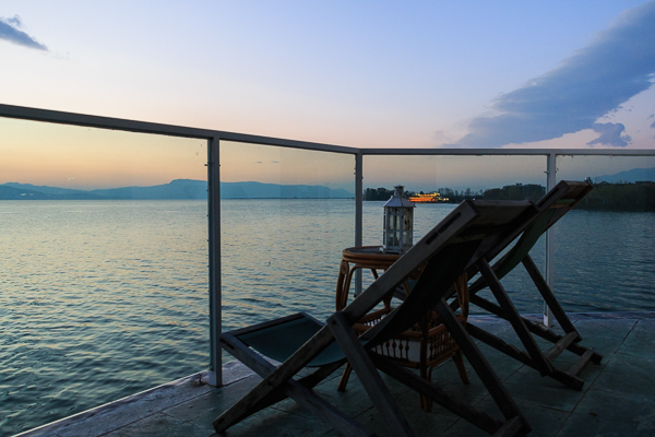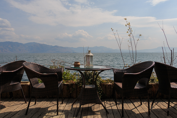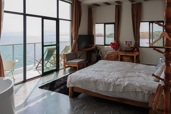 大理一般住古城和洱海旁边,较少住下关。这些地方的客栈很多,很多都很有特色,网上很好找。看网评说桃源村相对安静,我们就定了明月世内桃源客栈的无敌海景浴缸间,668元。房间不错,有独立的观景阳台,躺在床上就可看洱海风景。客栈公共区域不是很大也很一般,早餐简单但味道不错。