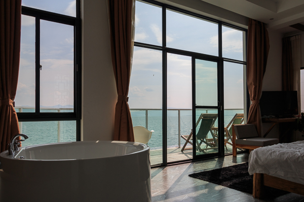 无敌海景浴缸房,躺在床上就可以看星星。