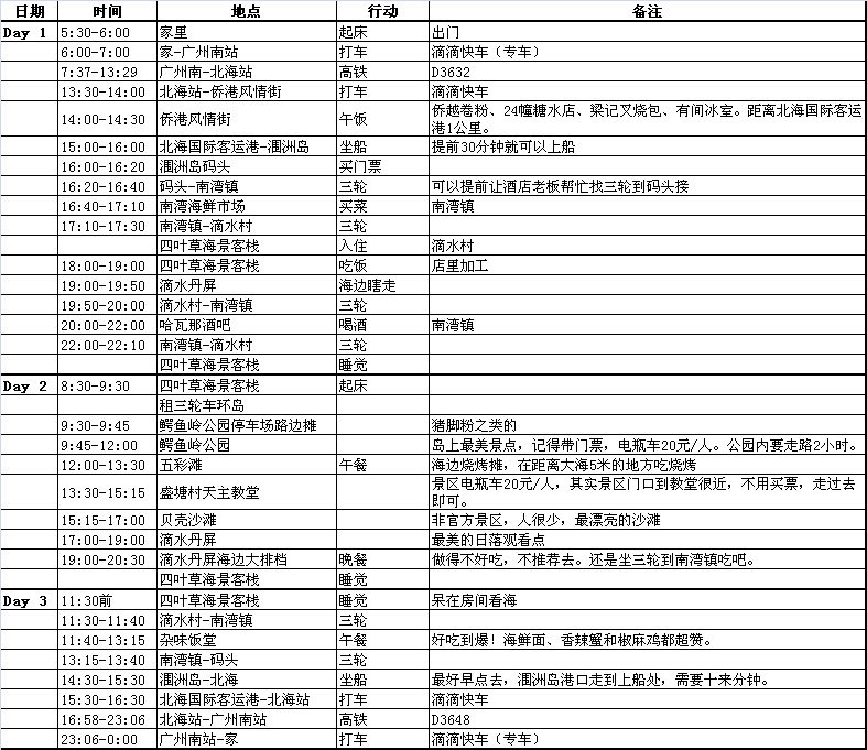广州到北海直通高铁,非常方便,很适合三天的小假期行程: