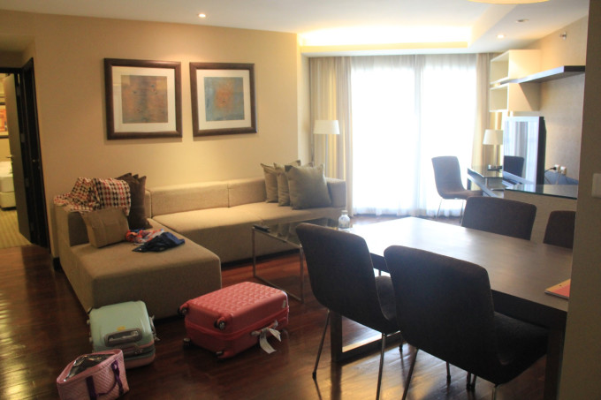 8.18硬是晚点到12点才上飞机,在飞机上就开始昏昏沉沉睡觉了,所以4个小时的飞行时间一下就到了,到机场后导游办完落地签,提取行李后直奔酒店,到达酒店已是泰国当地5点(泰国比中国晚1个小时)。曼谷入住的酒店还是挺大的,像个公寓酒店,有厨房客厅,适合一家人过来住。