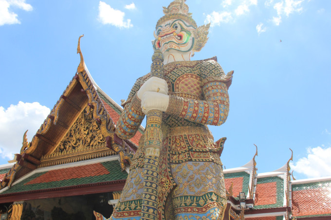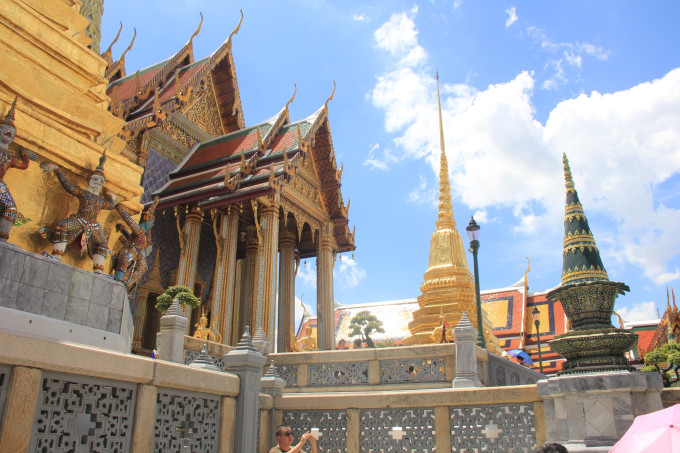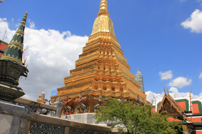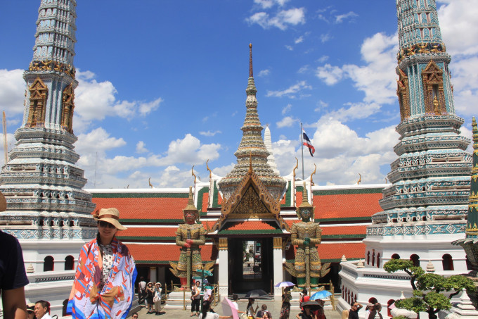 在酒店稍作休息后,便出发去大皇宫了。大皇宫虽然照片已经看到很多过,但身临其境感受它的魅力又是不一样的感受,建筑真的很宏伟很大气,富丽堂皇,再加上泰国的蓝天白云,所以感觉回来在整理照片时拍出来的效果特别好。