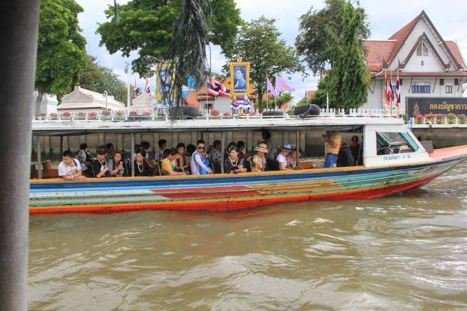 参观完大皇宫出门向左一直走就来到了湄南河水上市场,这里有很多果汁水果,不过后来发现这里也是价格最贵的。市场里还有当地的电话卡卖,需要的小伙伴可以在这里购买,因为导游说便利店已经买不到电话卡了,中国游客实在是太多了。穿过市场就到了坐船游湄南河的码头了。