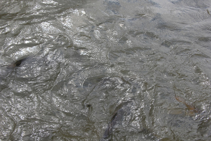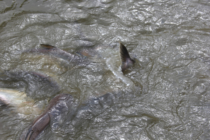 湄南河里有神鱼,你可以买面包喂它,20泰铢一包。