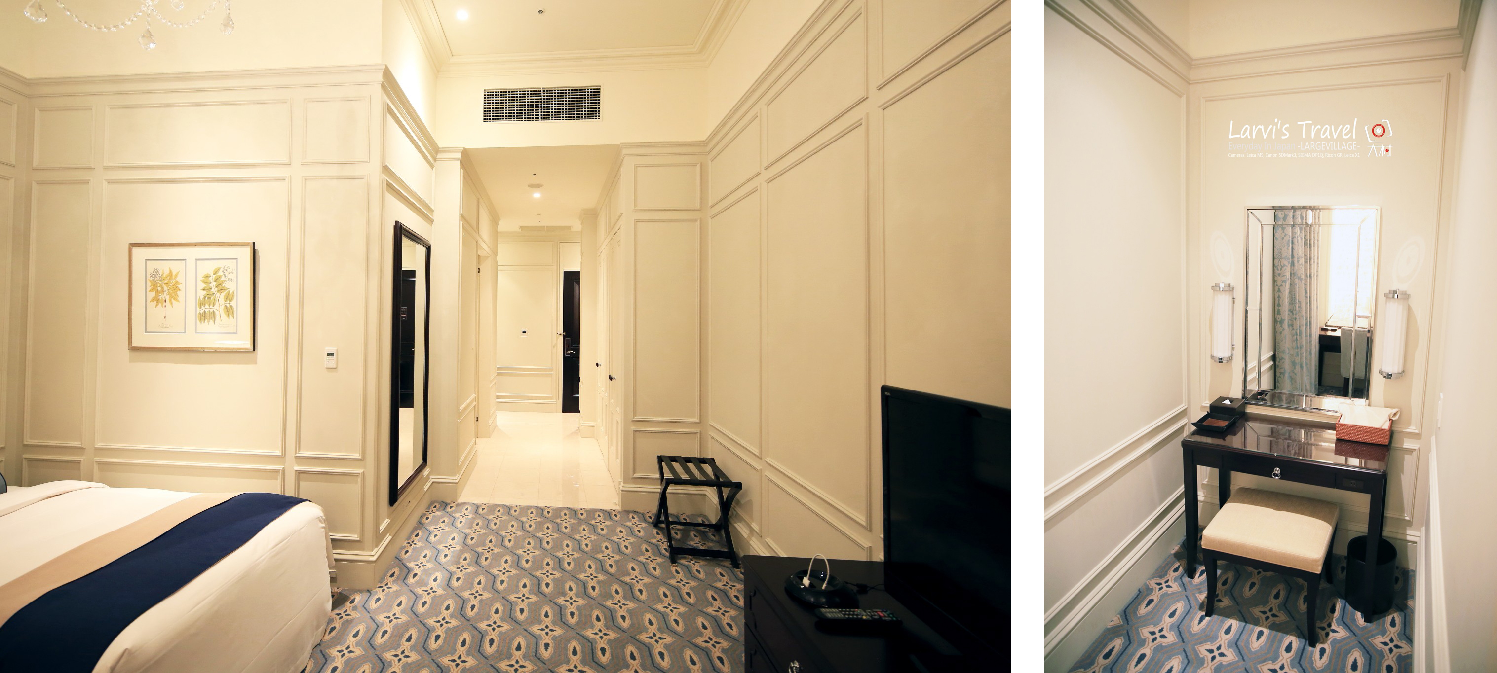 看这房间内的走道,也是霸气侧漏了,有点要迷路的感觉,左手边进去是洗手间和淋浴, 还有梳妆台,层高真的非常高,很透气