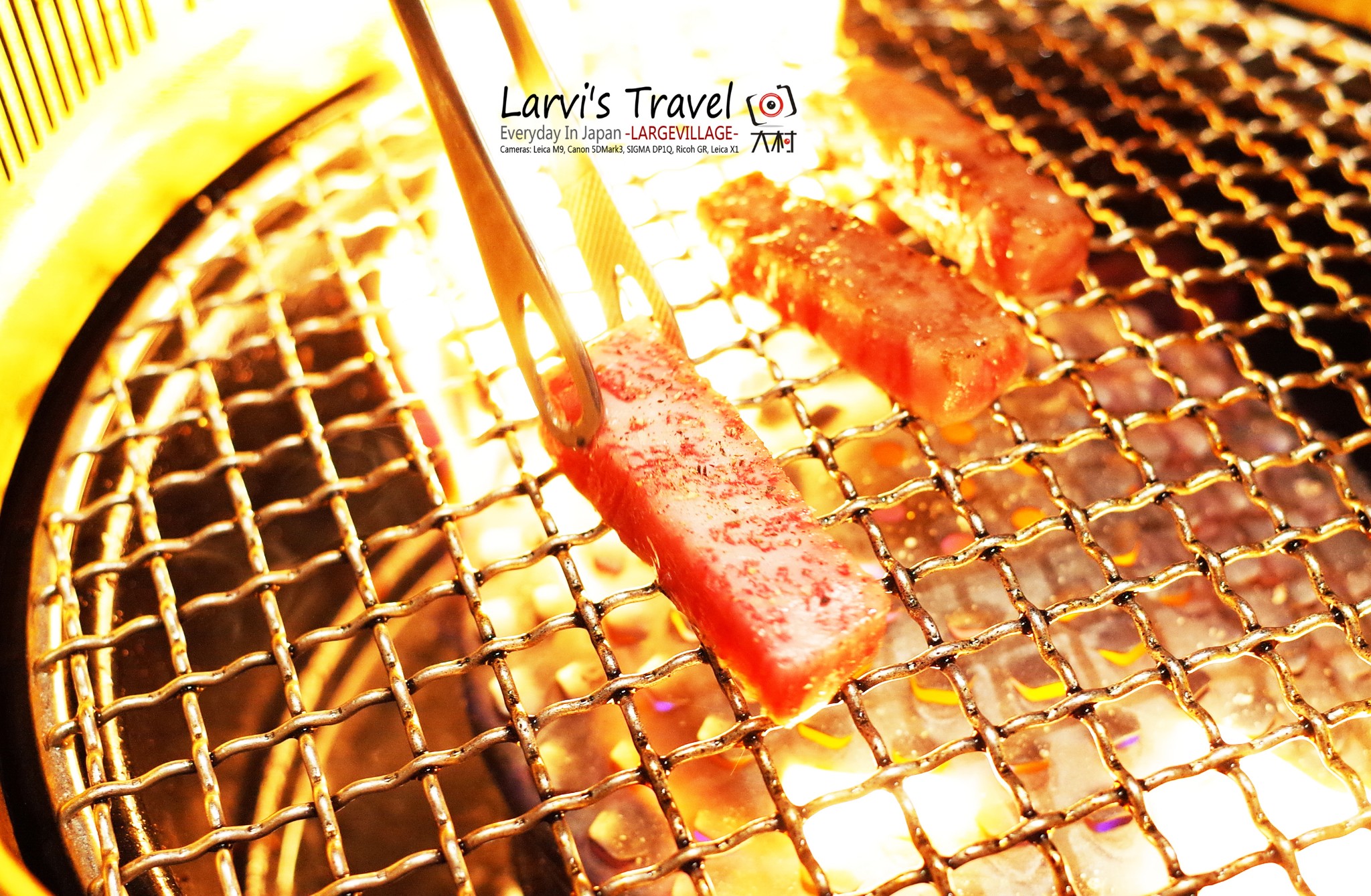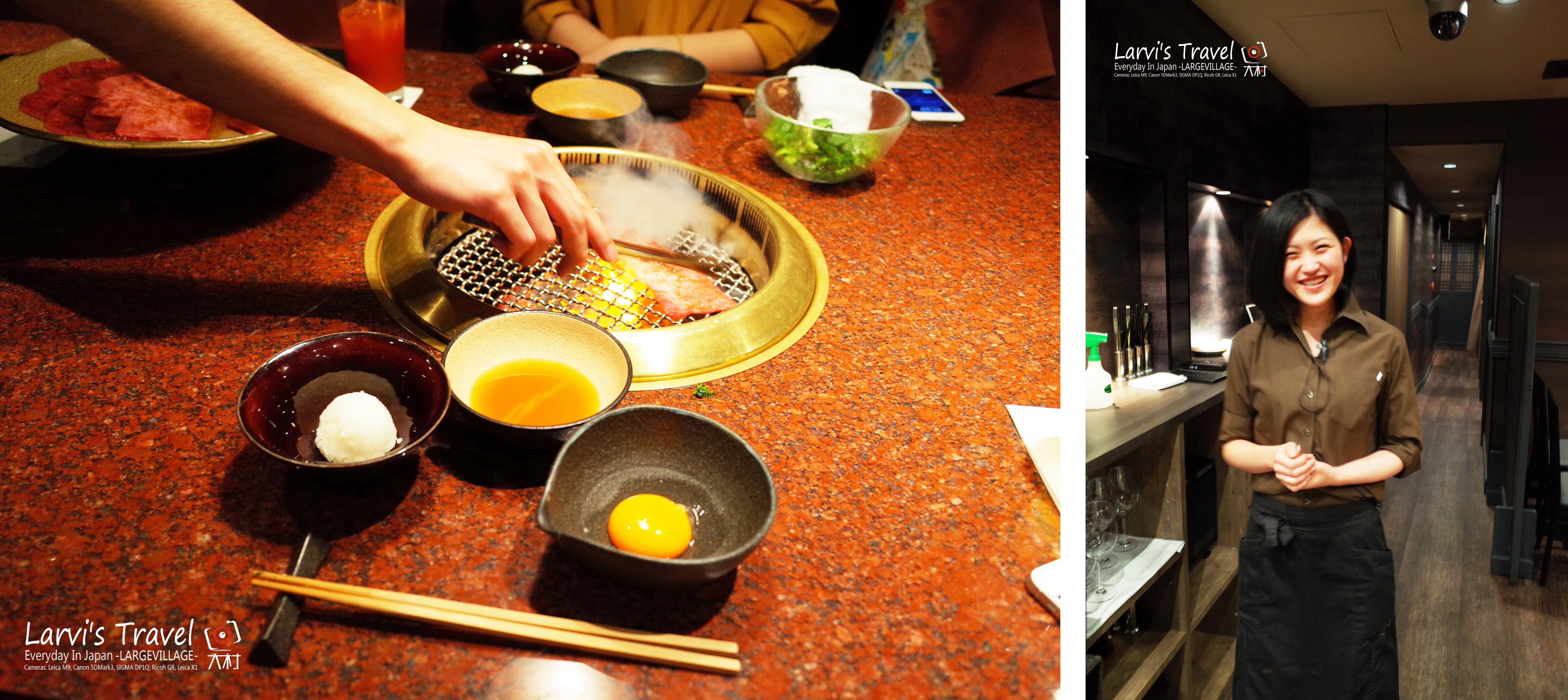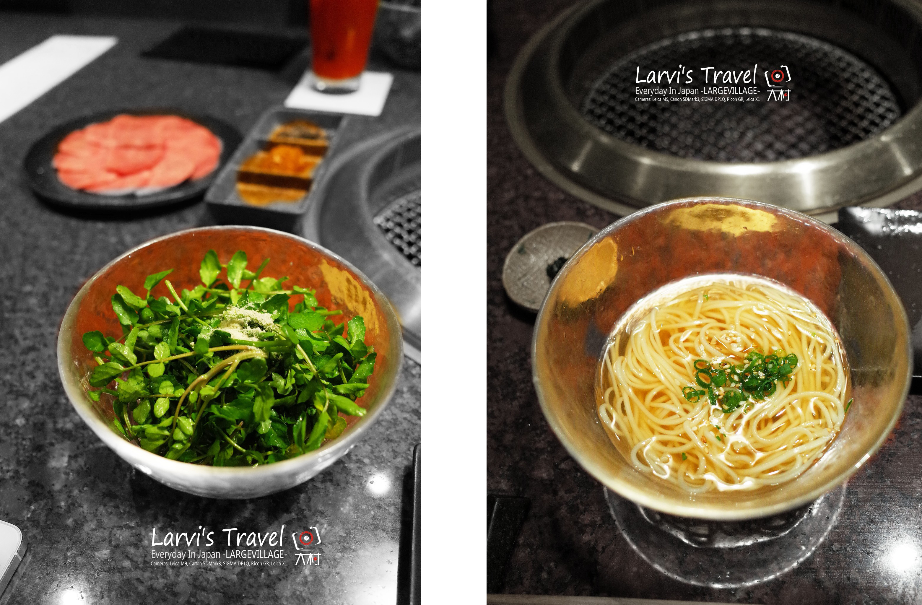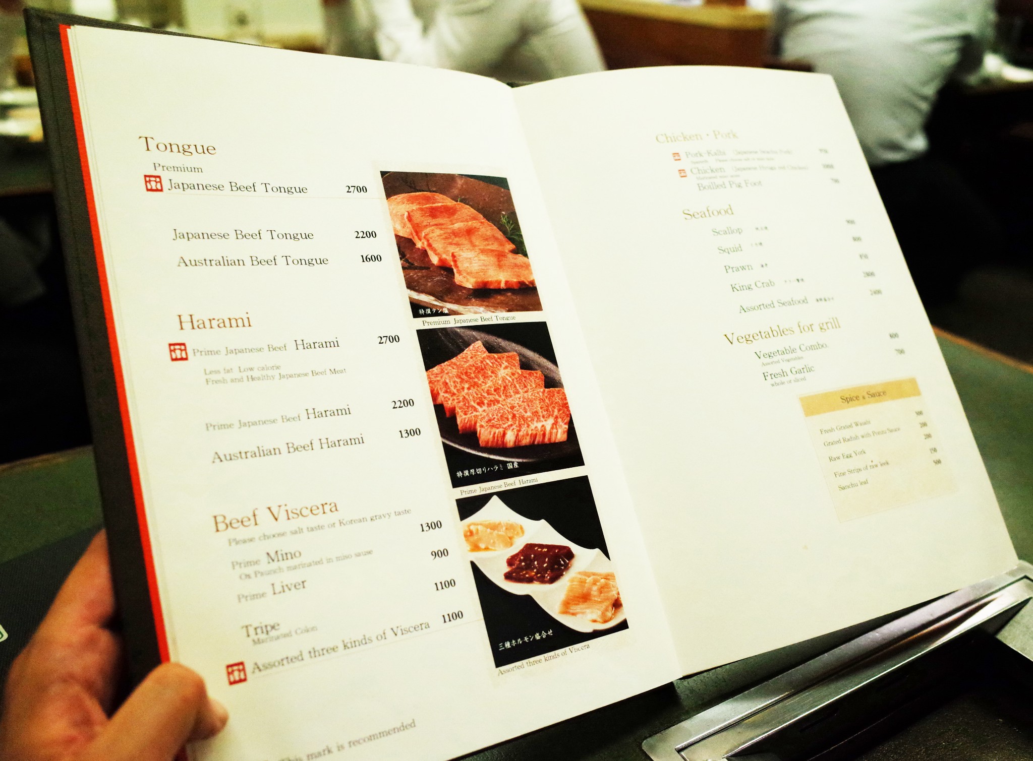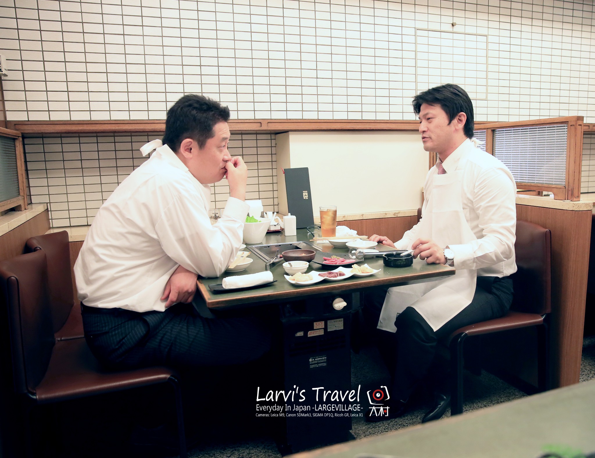 是一家1958年开业的老店,肉品也非常不错。上了二楼,隔壁是两位日本朋友,目测是下班后相聚吃烤肉,呵呵,围着围裙。