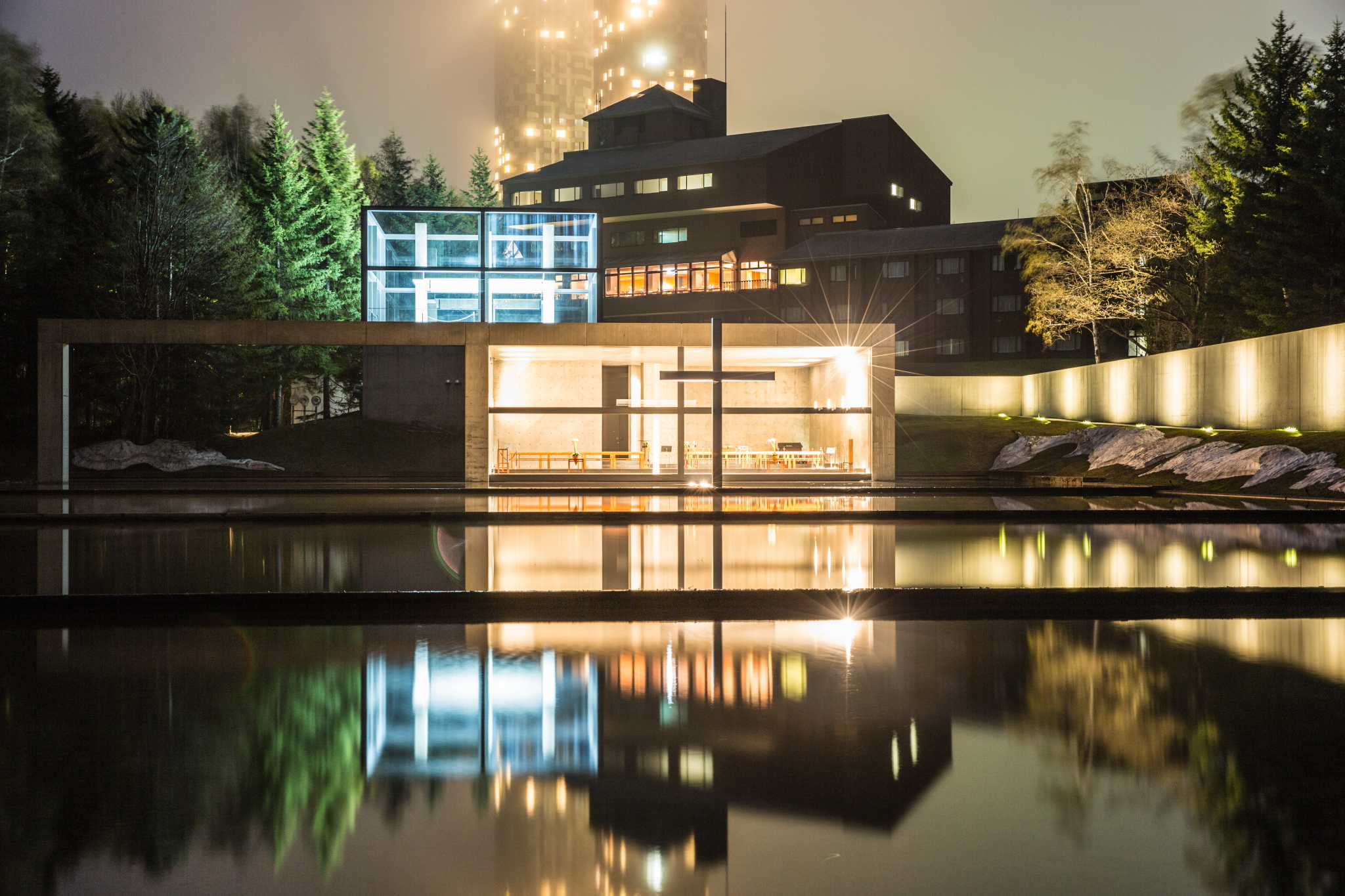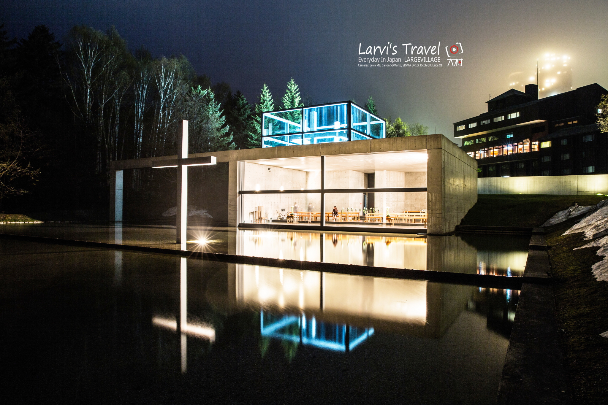 【北海道】夜晚的水之教堂,透露着一股安静的力量,吸引着我们的目光