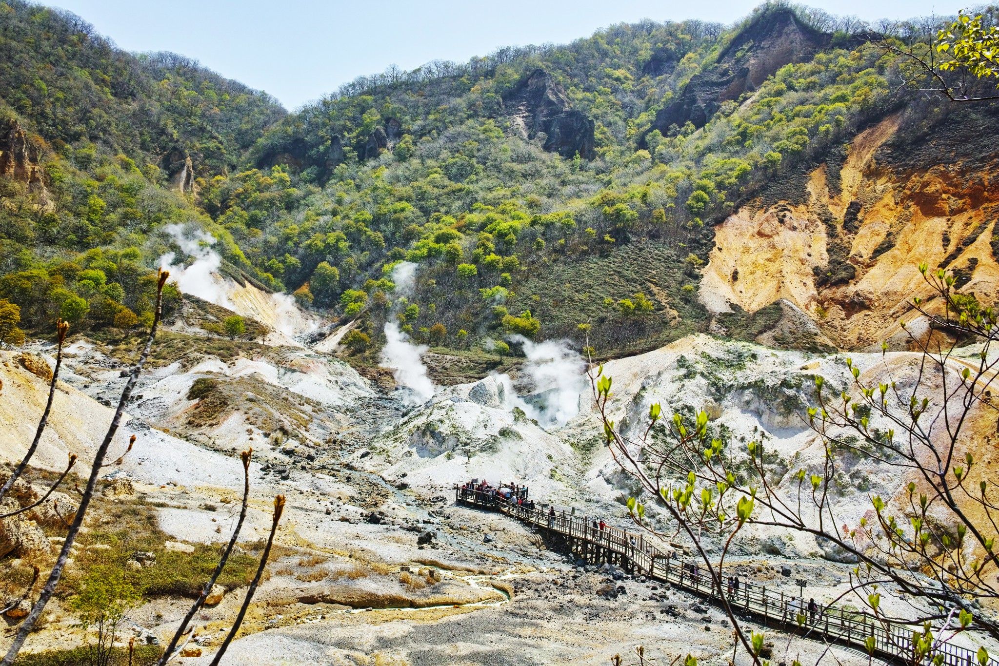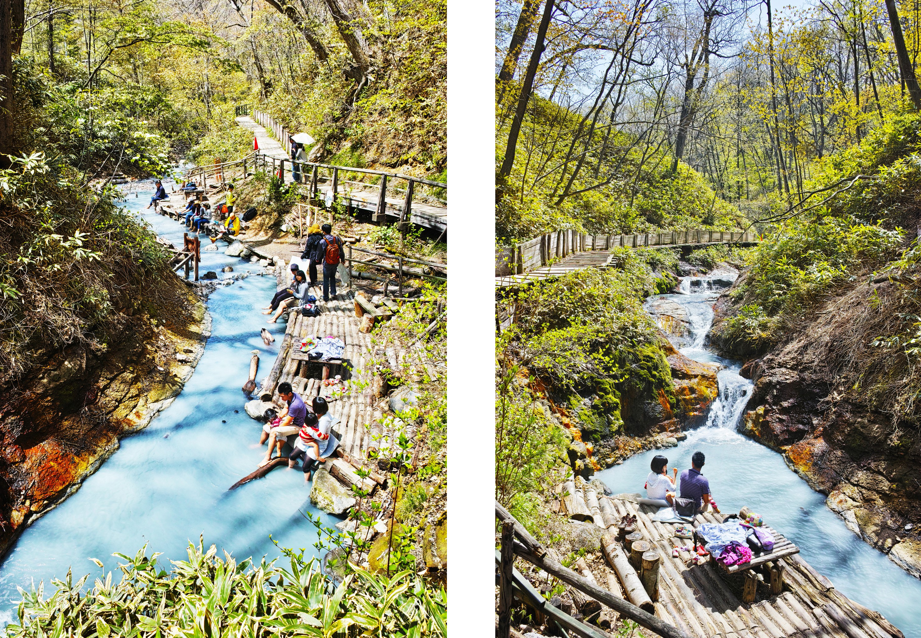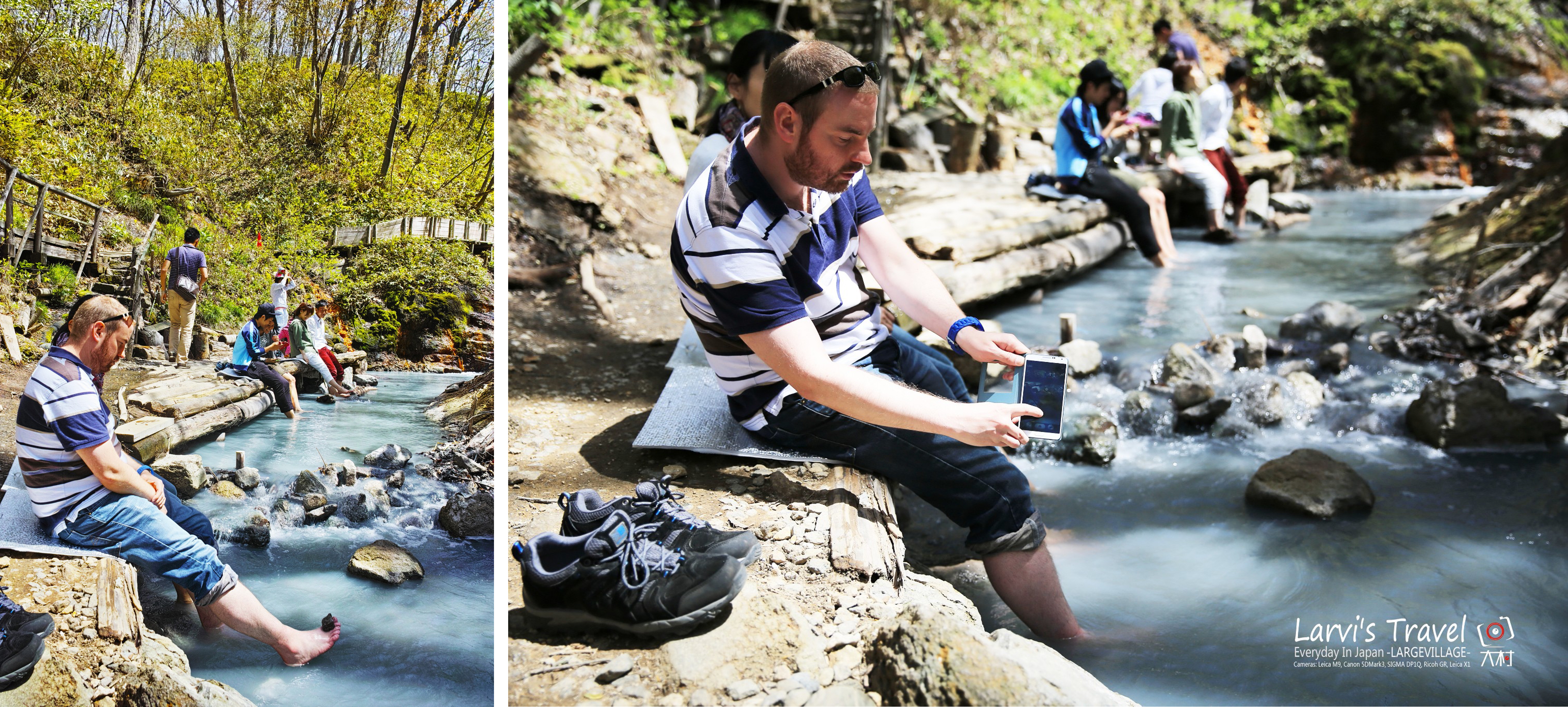 【北海道登别大汤沼川天然足汤】不赶时间不赶景点,悠哉的在北海道的小树林里,泡着原生态的温泉足浴。抬头可以看看颜色丰富的树林和蓝天,树林里时不时有阵微风吹来,心情也棒棒的