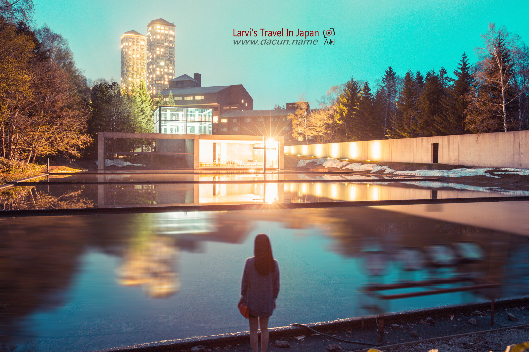 【北海道】黄昏时分的水之教堂源自日本著名建筑师安藤忠雄的设计。整个水之教堂倒影在安静的水面之上,晚上我们入住的酒店就在它身后的两座塔楼里,水之教堂也是这个度假村的组成部分之一