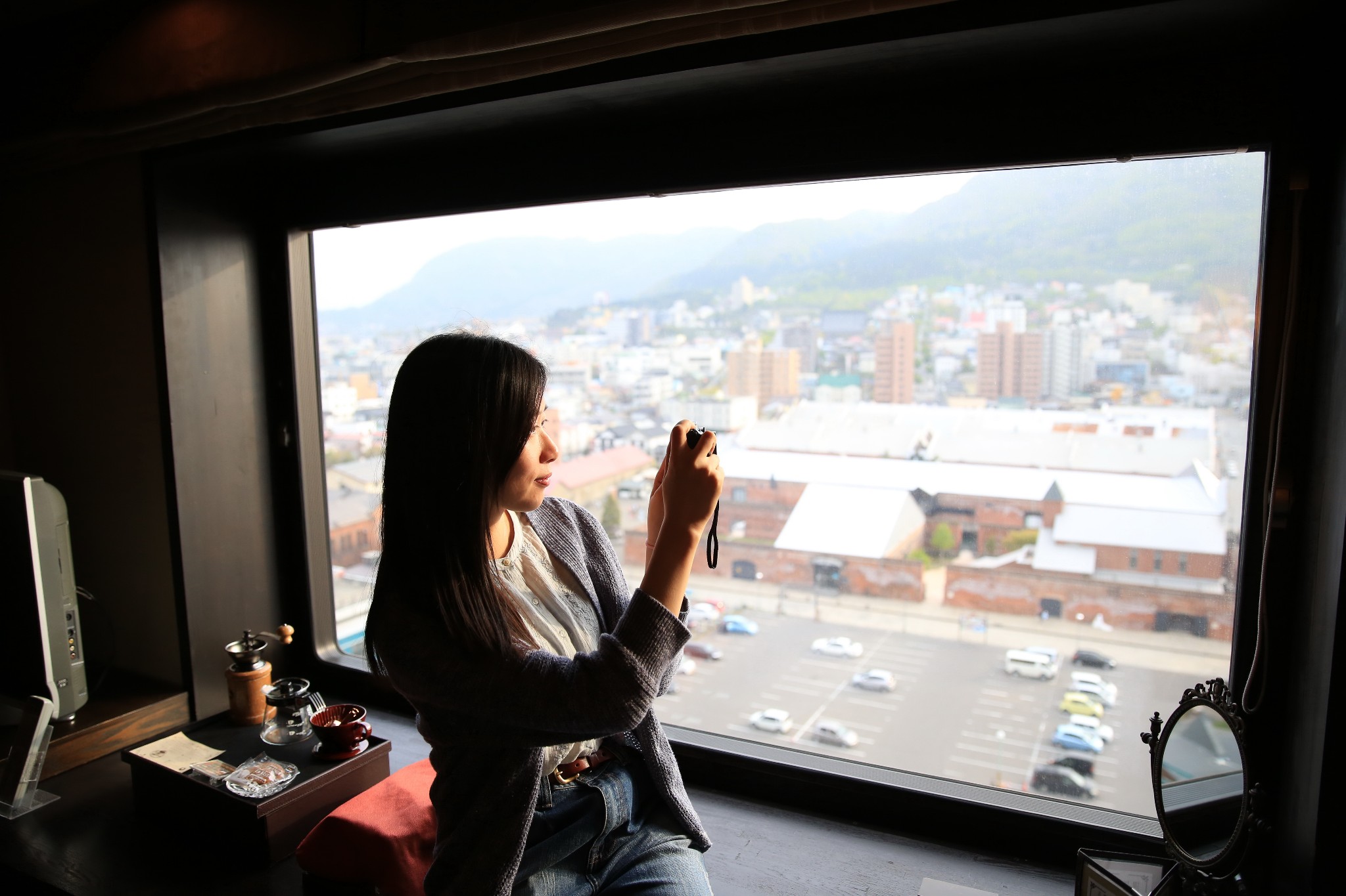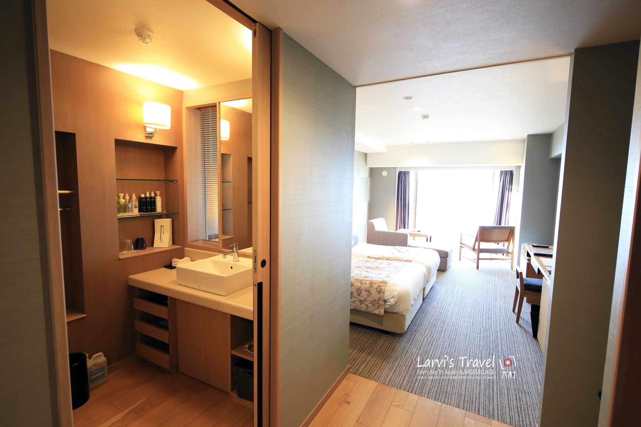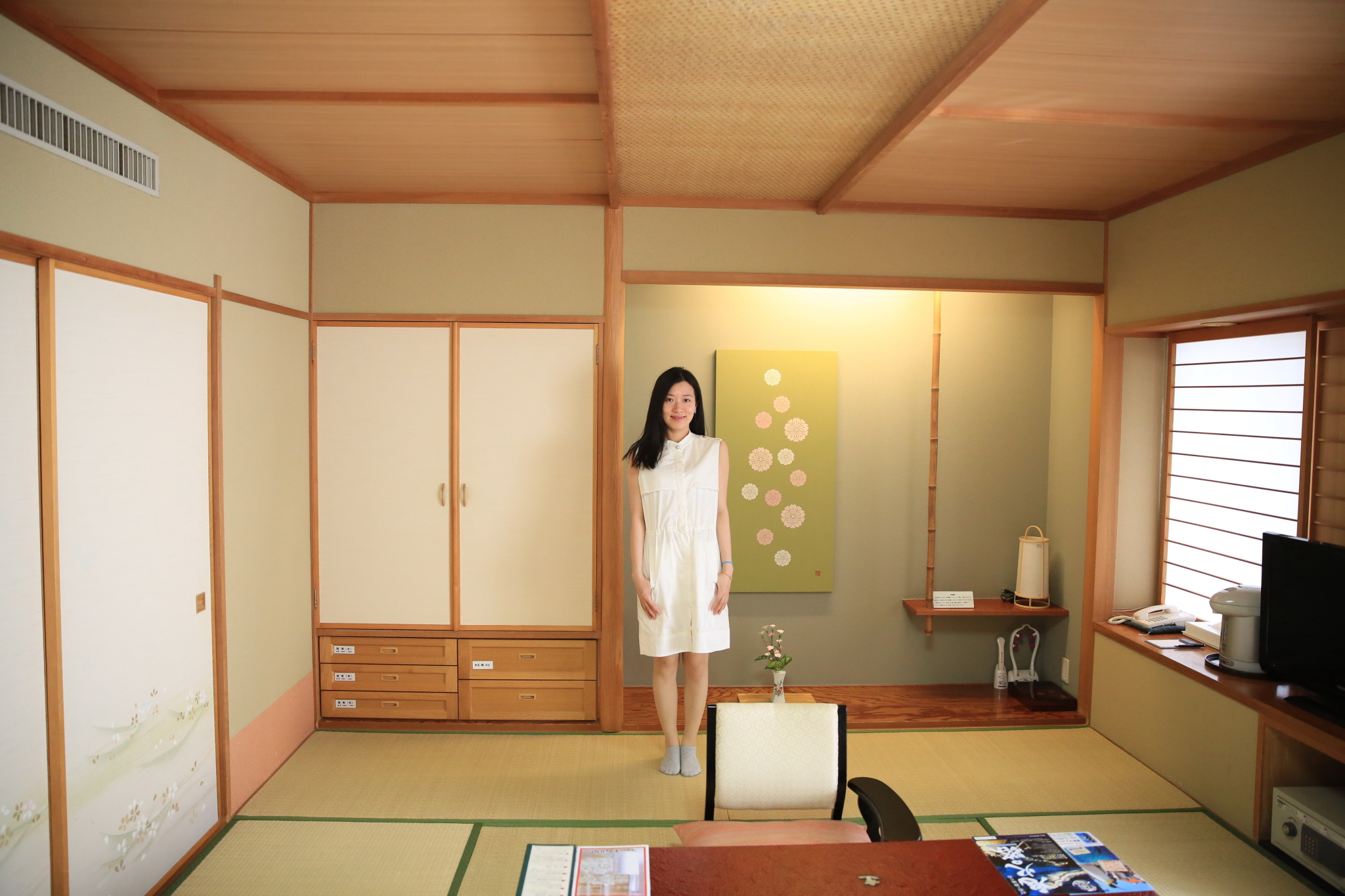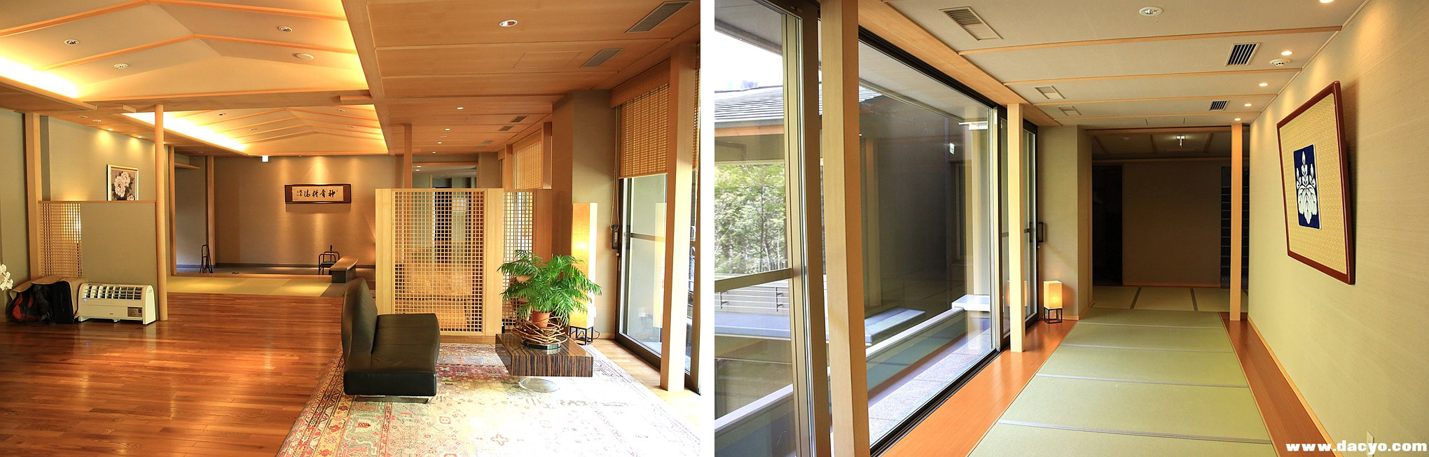 【北海道登别】和式旅馆内部,颜色非常的和谐统一,细节也很不错,右手边窗外有自带硫磺私汤。