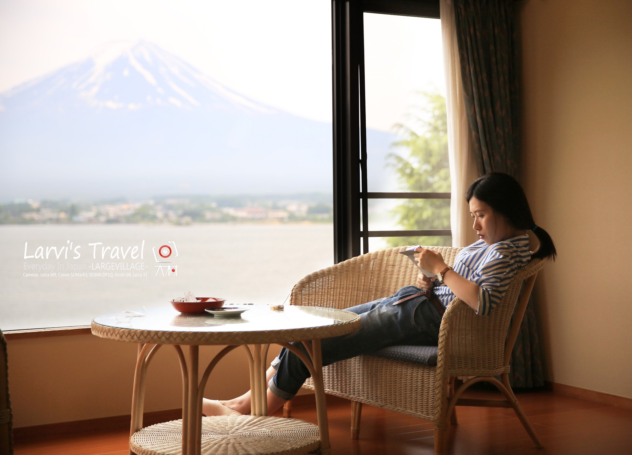 面对着河口湖和富士山,这美美的景色,无所事事呆呆的坐着也是种享受。